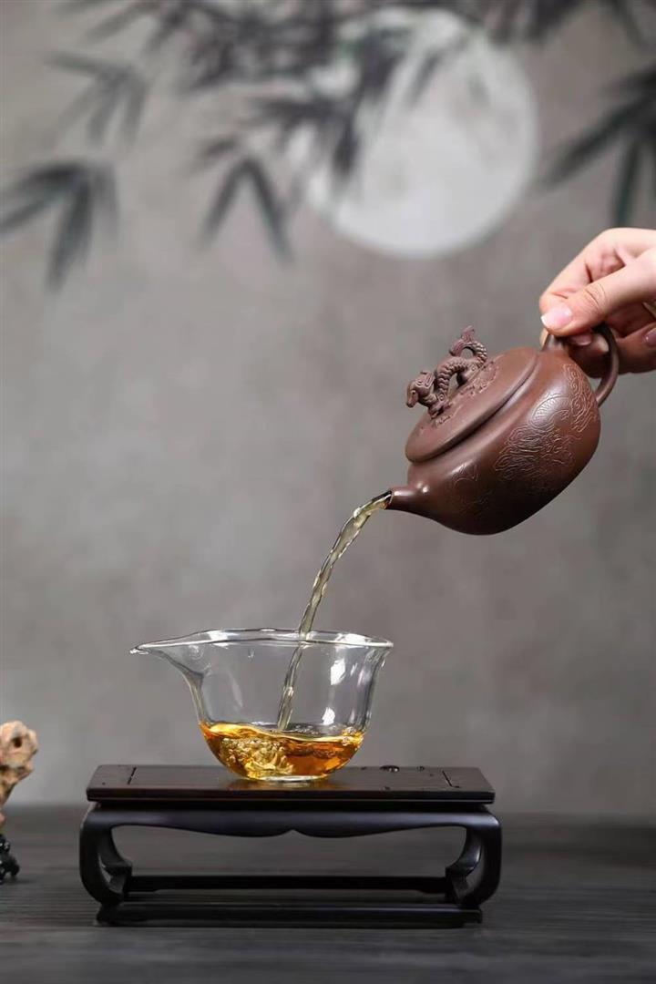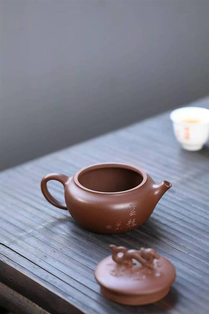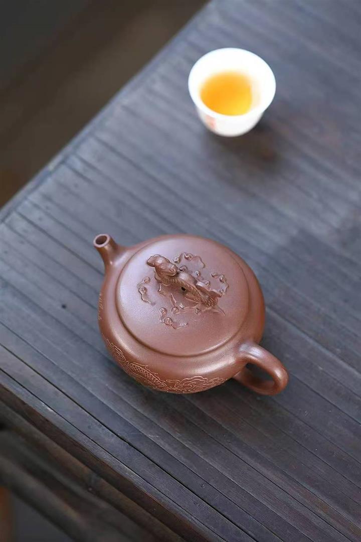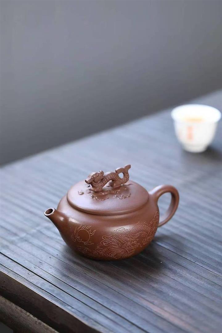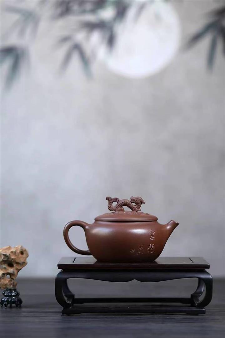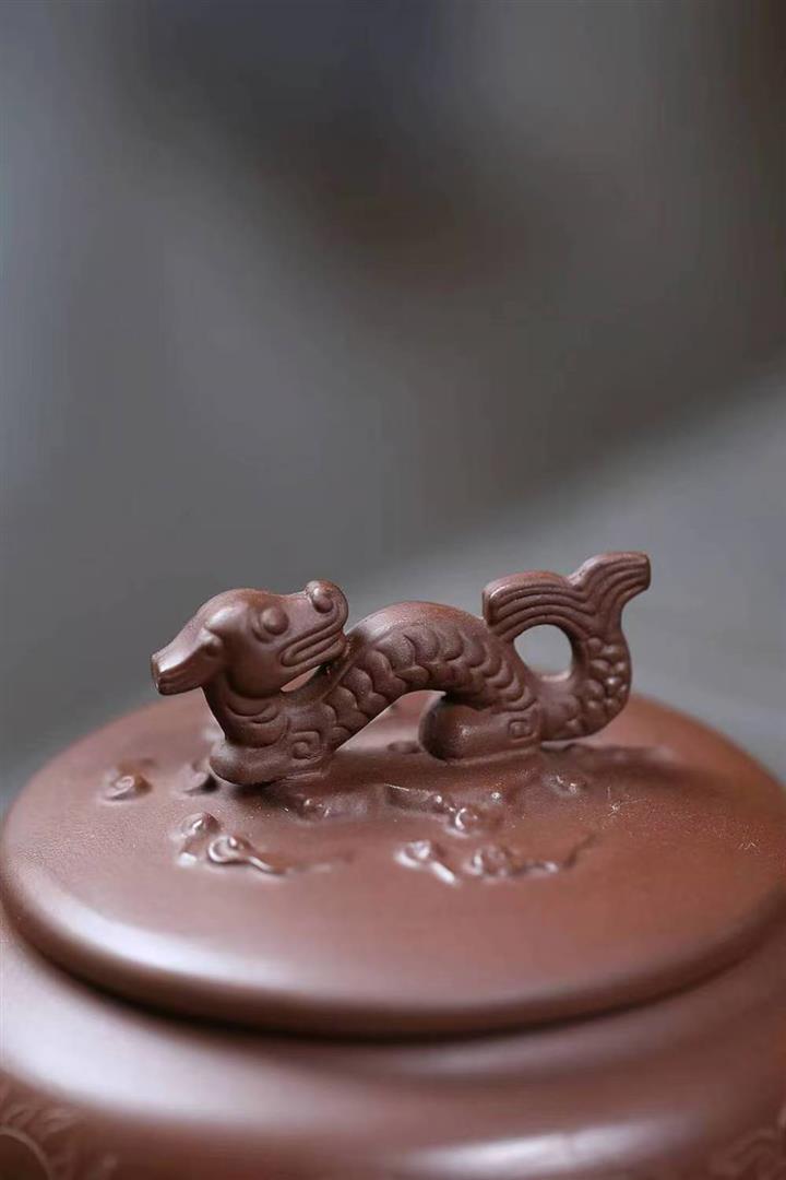 原礦陳腐紫泥刻繪雲龍德鐘壺POT6575