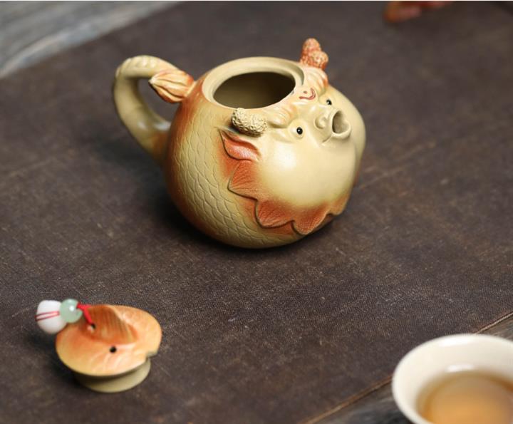 高溫沈香泥匠心手製大牛蓋紫砂壺POT6593