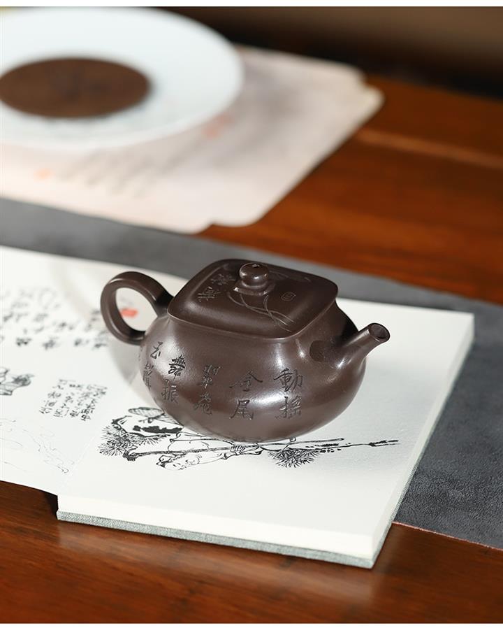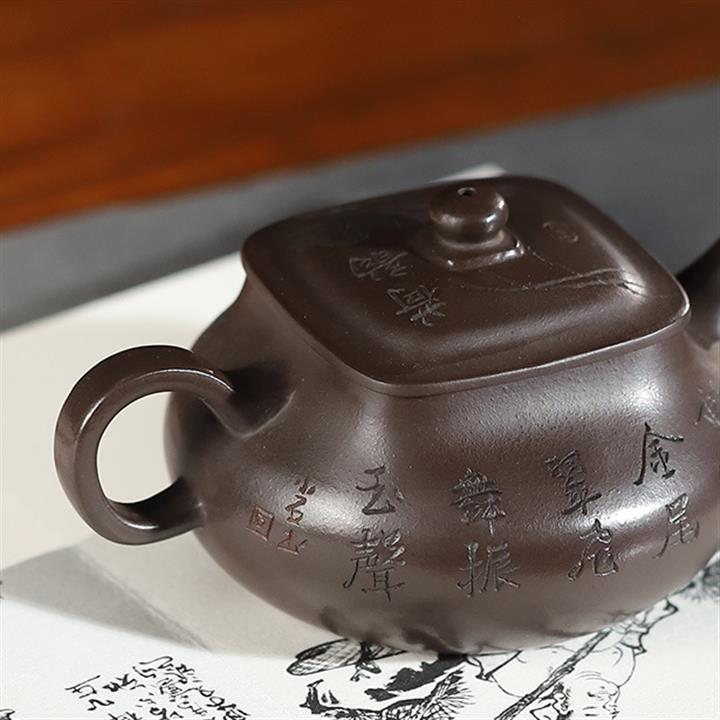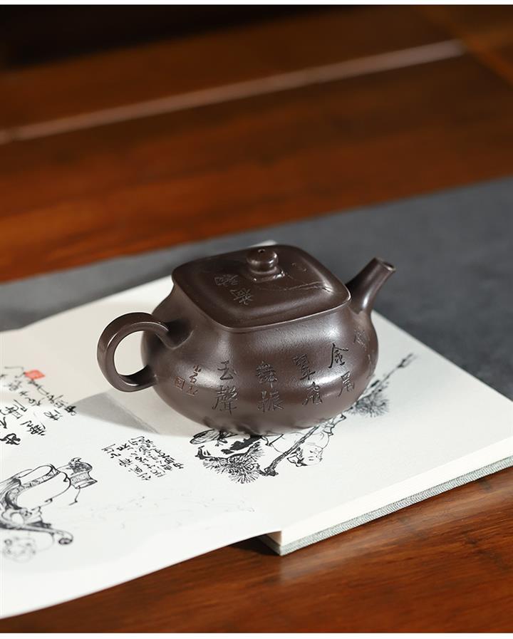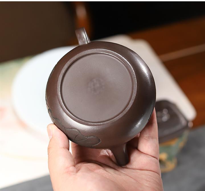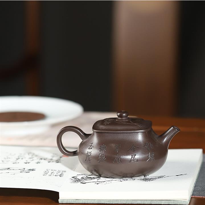 原礦老紫泥純手工刻繪乾坤茶壺POT6599