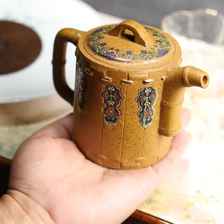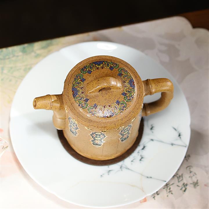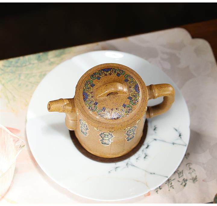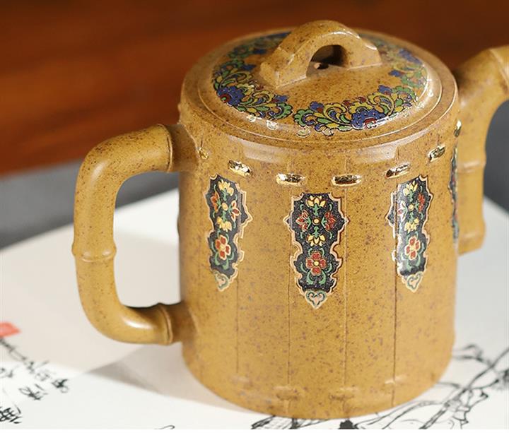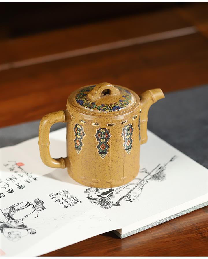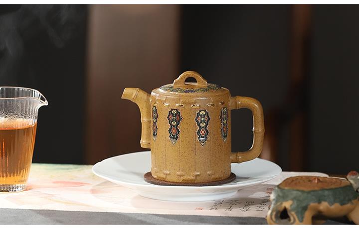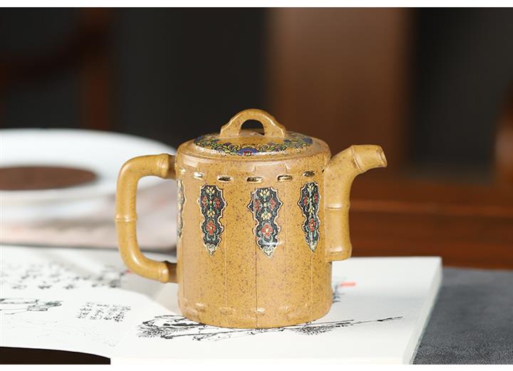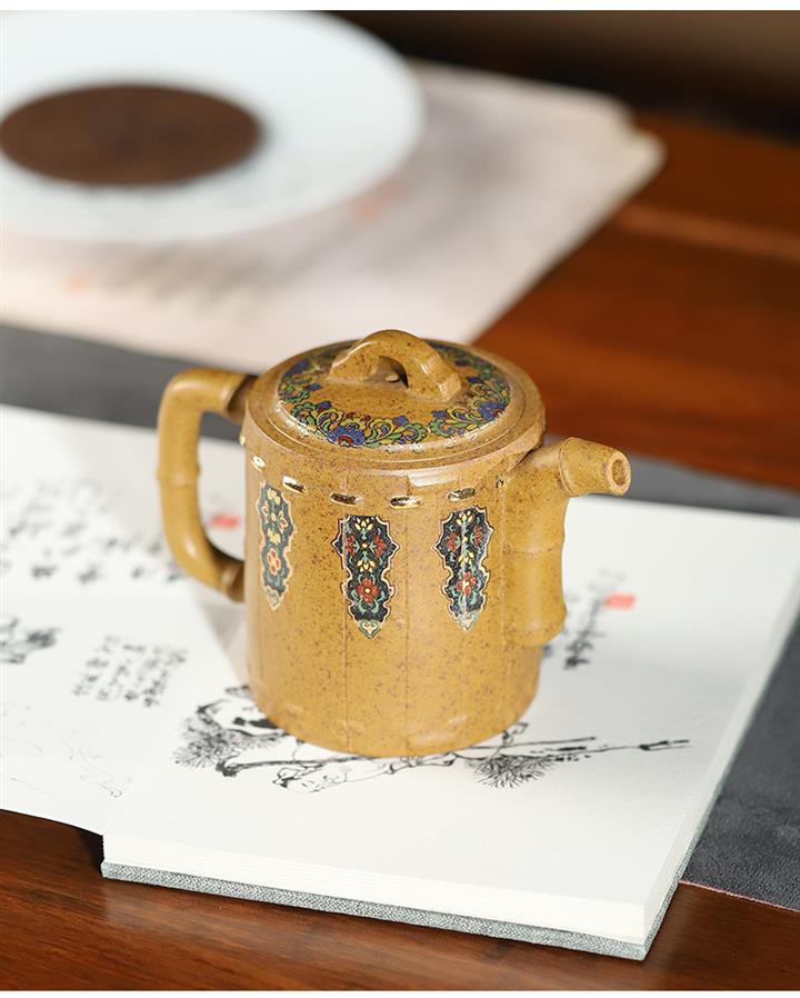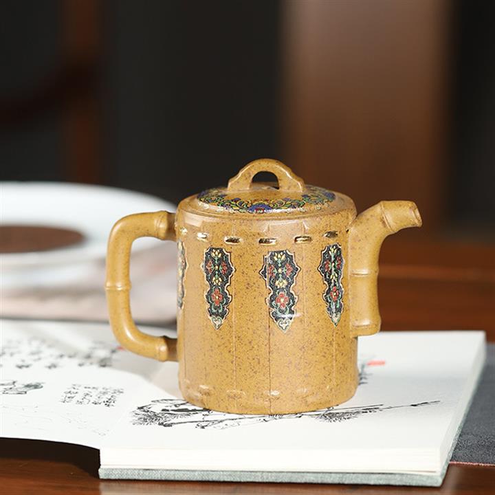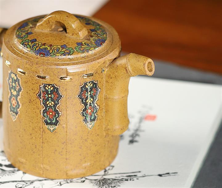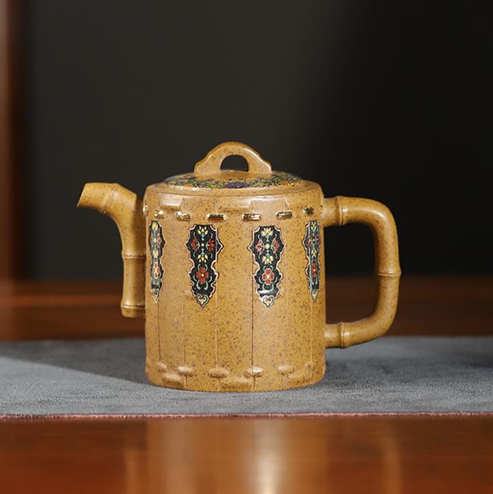 【品名】琺瑯彩竹節茶壺(附:壺繩高檔禮盒作者收藏證書茶巾)