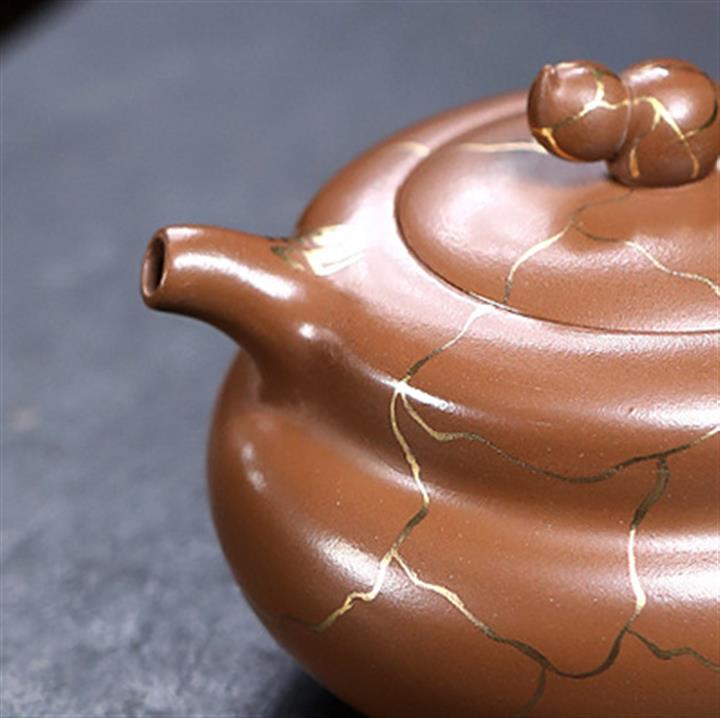 原礦赤金朱泥描金葫蘆茶壺POT6604