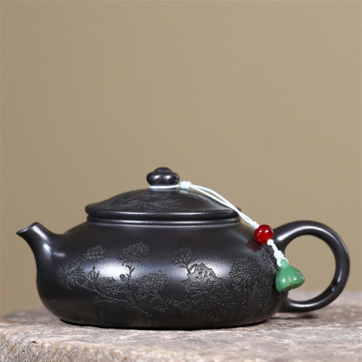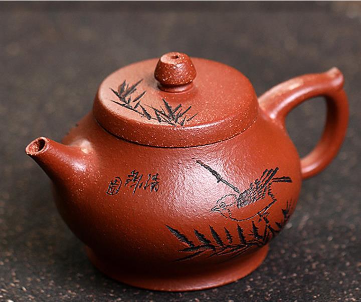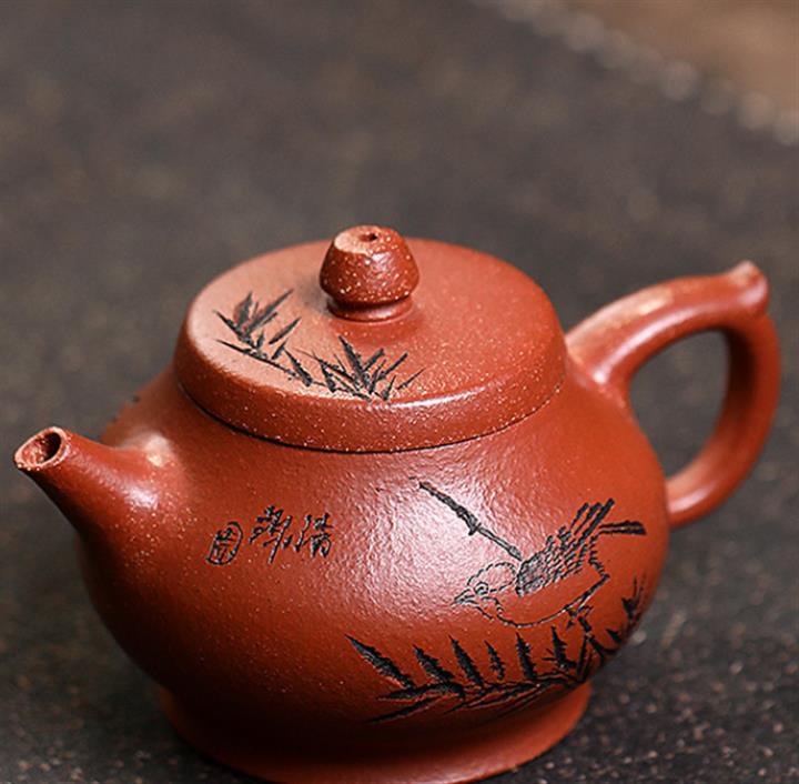 原礦龍骨金砂雙刀刻字炮嘴漢瓦茶壺POT6617