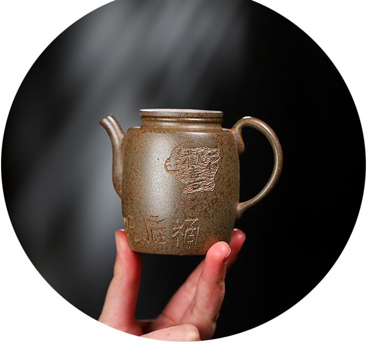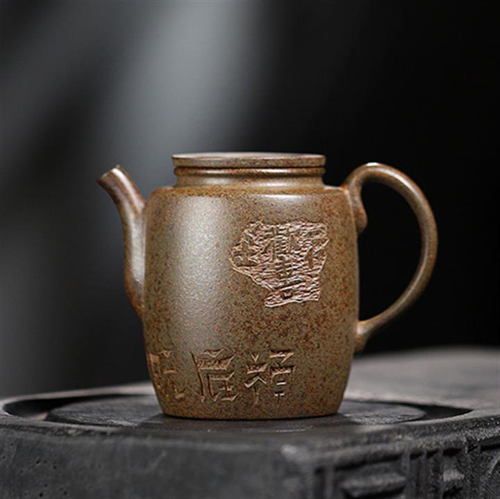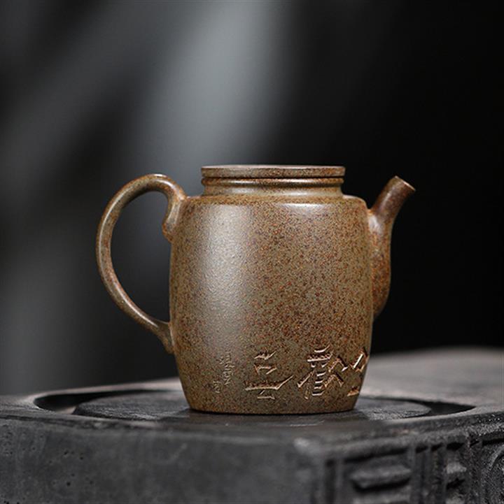 原礦龍骨金砂雙刀刻字炮嘴漢瓦茶壺POT6617