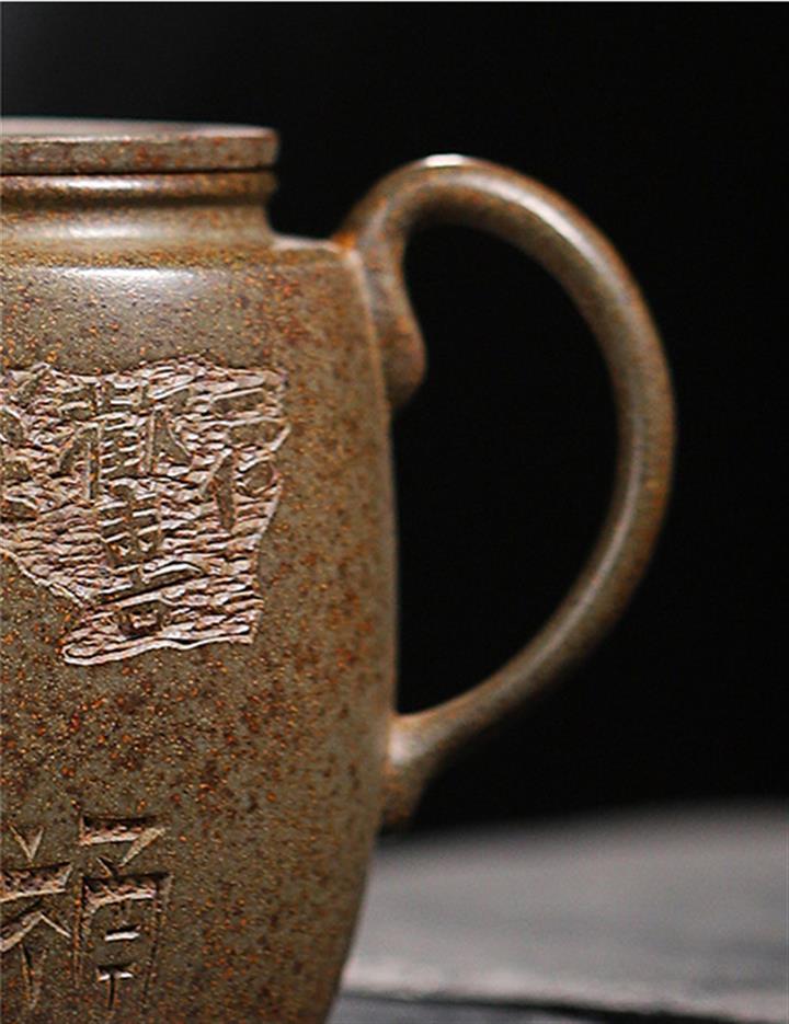 原礦紫砂手工刻繪花開富貴茶杯POT6614