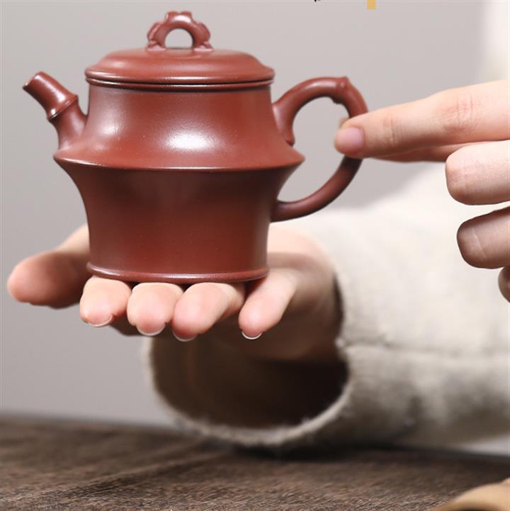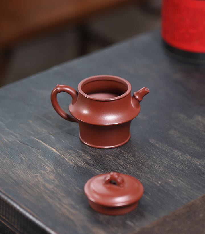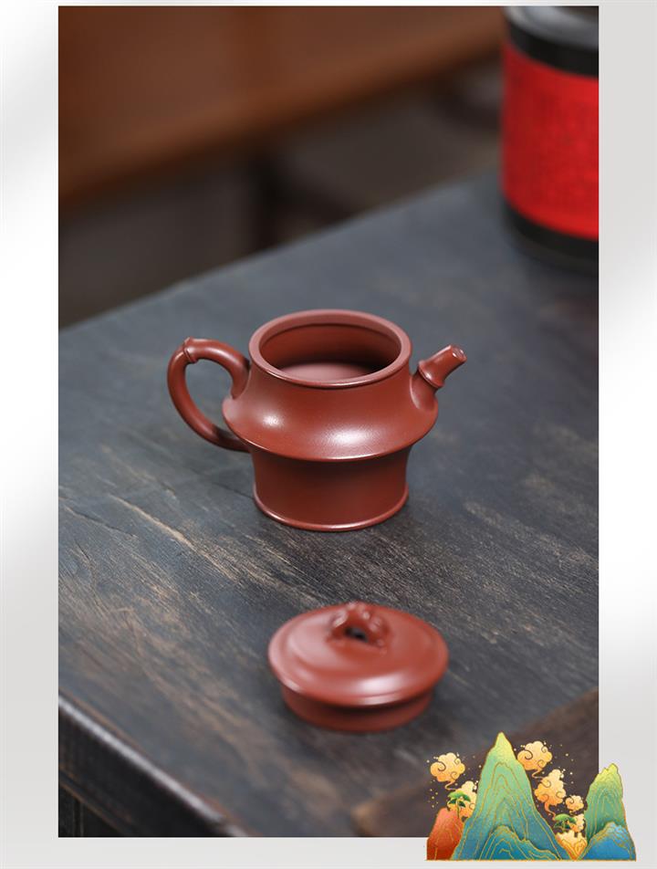 原礦陳腐鄒皮朱泥手工刻竹竹鼎茶壺POT6620
