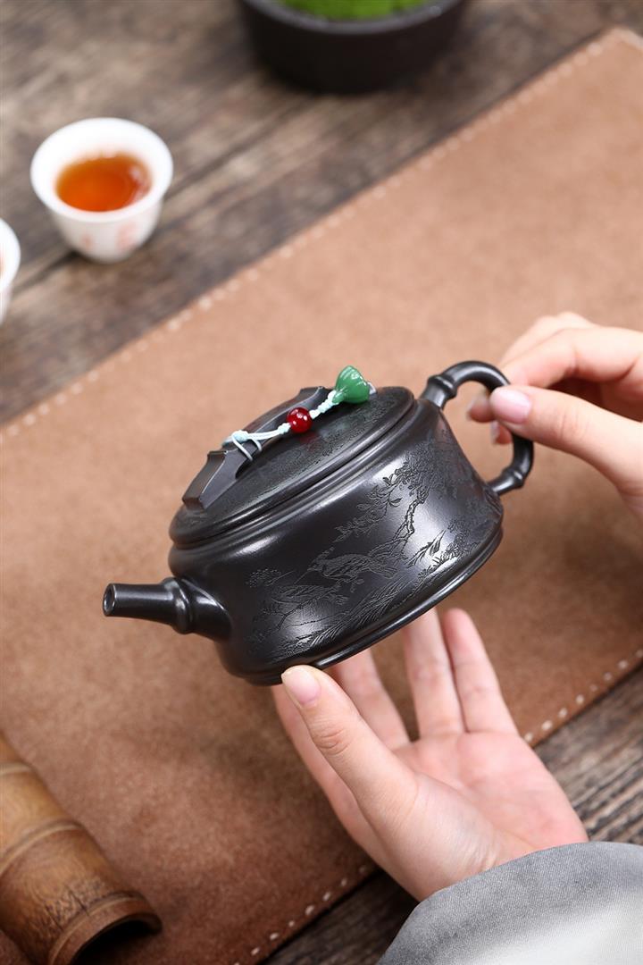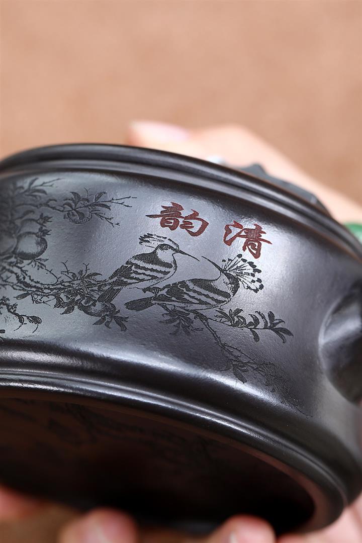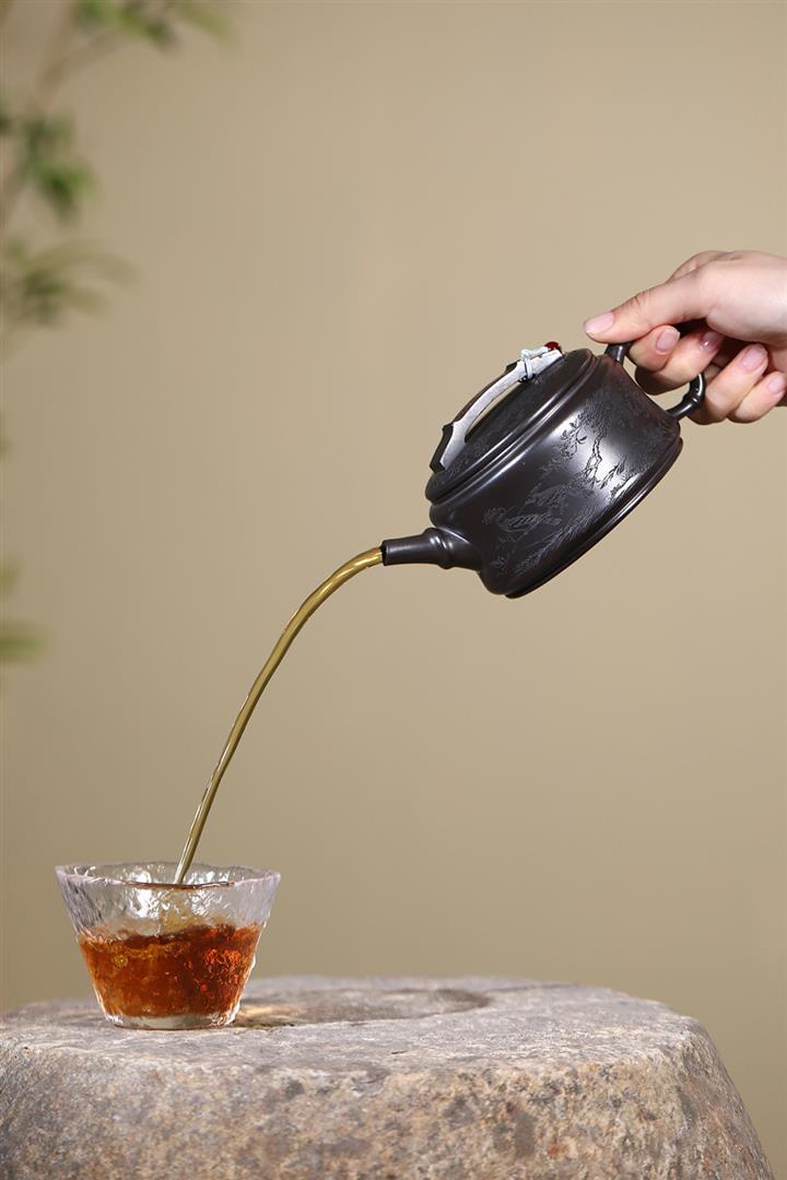 紫砂使用越久,壺身色澤越發光亮照人,氣韻溫雅。紫砂壺長久使用器身會因撫摸擦拭,變得越發溫潤光澤!