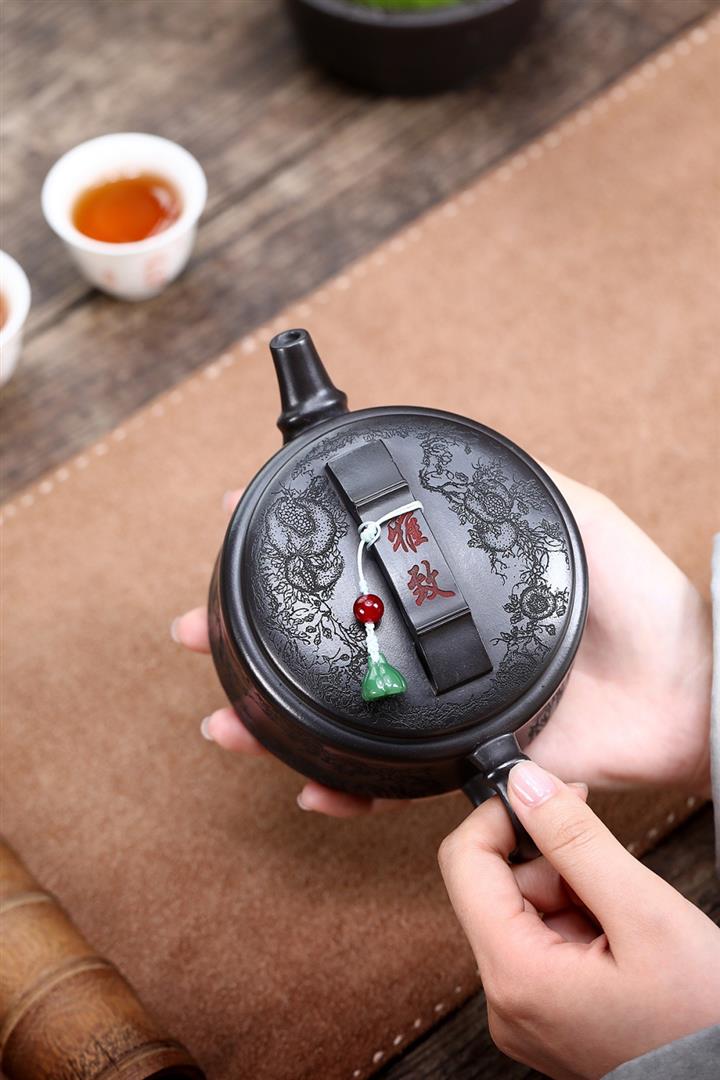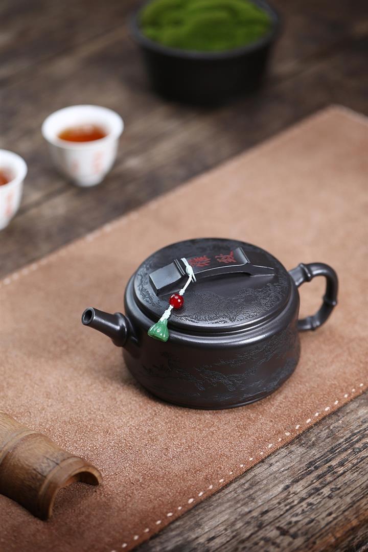 原礦赤金朱泥手工祥雲周盤茶壺POT6628