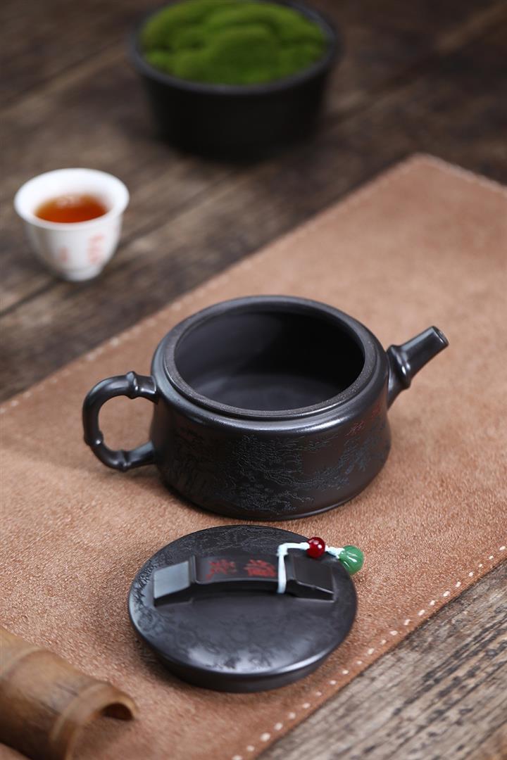 原礦朱泥手工彩繪山水德鐘茶壺POT6626