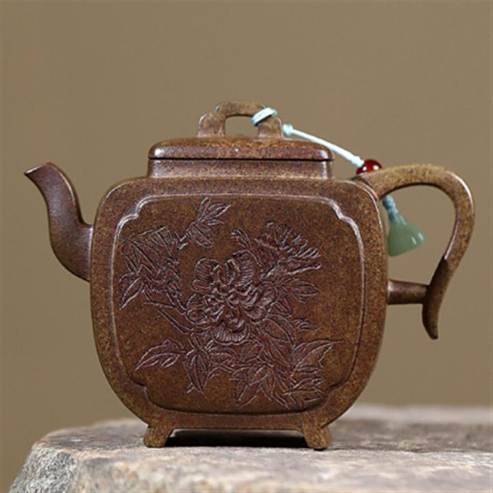 原礦高溫柴燒沈香泥牡丹尊方茶壺POT6634