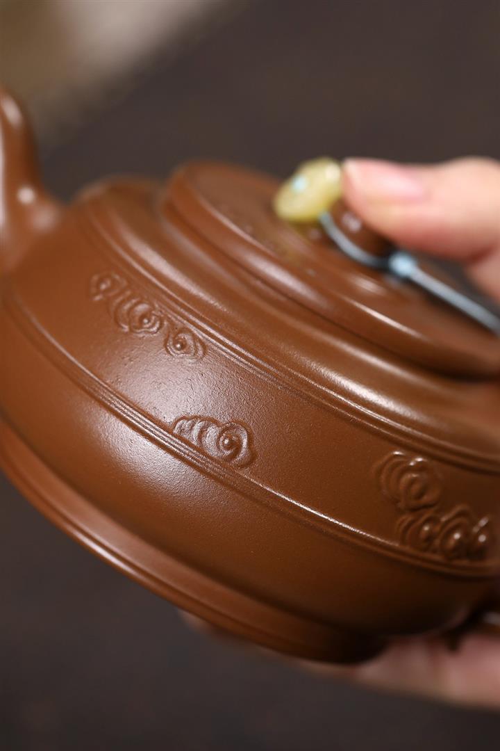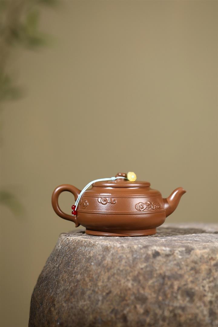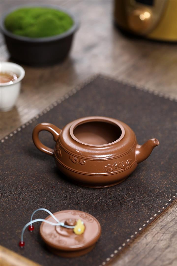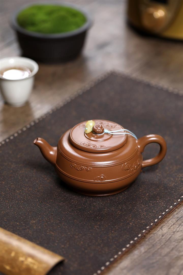 原礦赤金朱泥手工祥雲周盤茶壺POT6628
