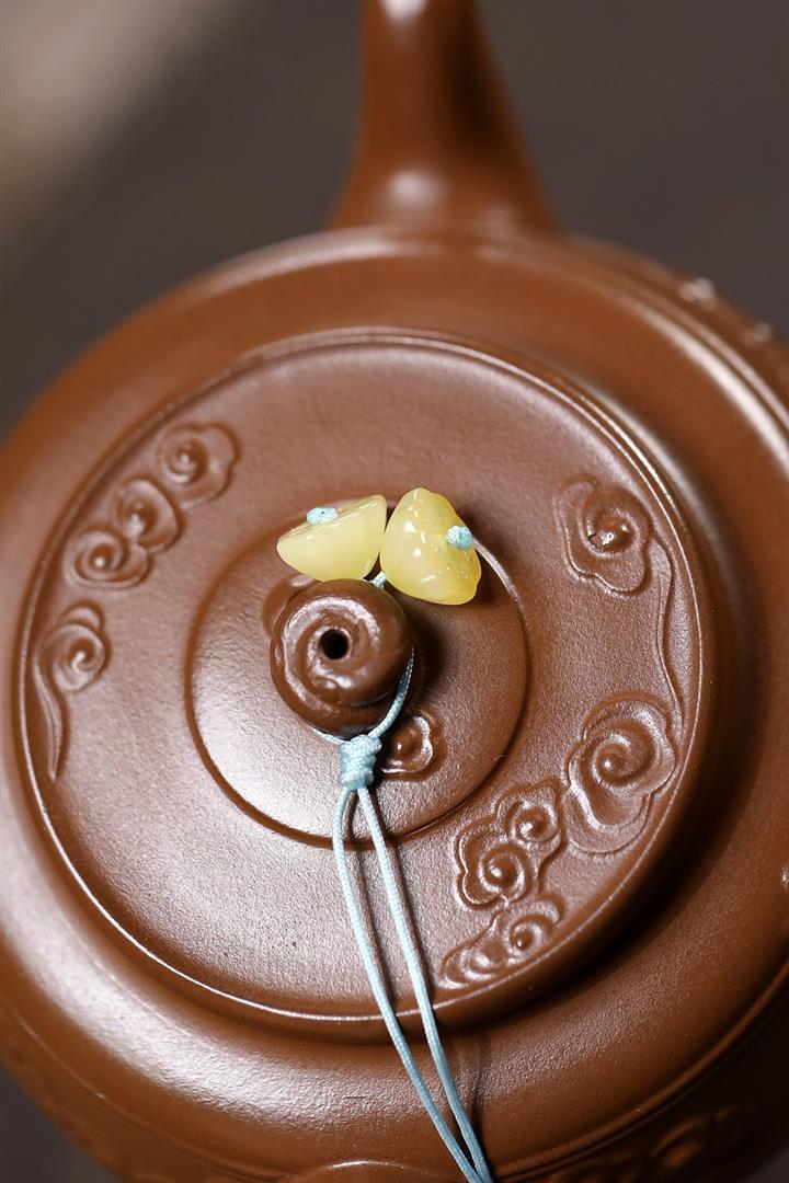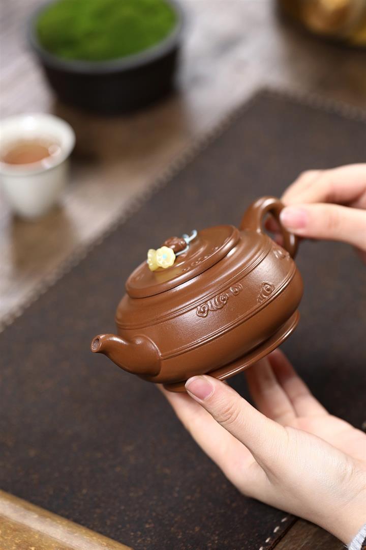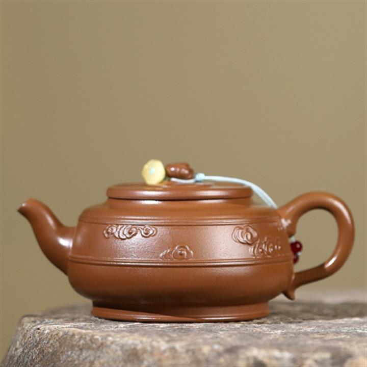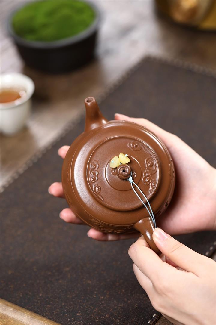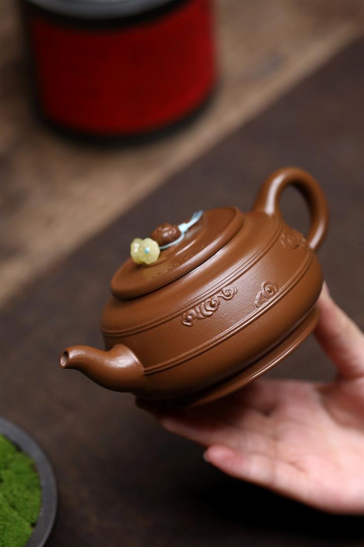 原礦赤金朱泥手工祥雲周盤茶壺POT6628