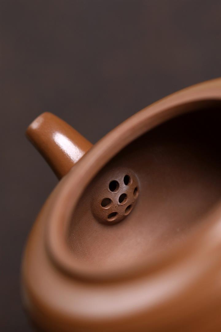 【泥料特點】砂土氣重,似淳實農民,日久使用,漸露鋒芒,養成變化,溫潤莊重。紫砂是一種雙重氣孔結構的多孔性材質,氣孔微細,密度高。用紫砂壺沏茶,不失原味,且香不渙散,得茶之真香真味。