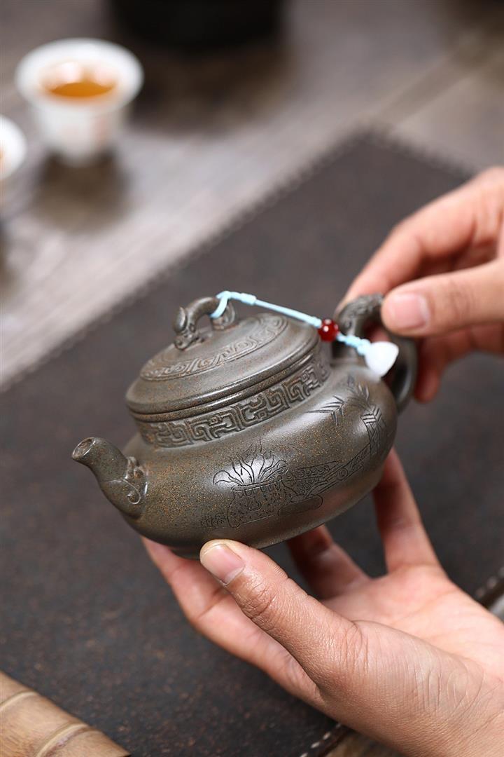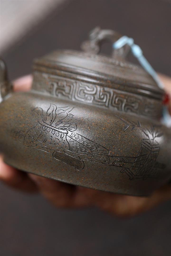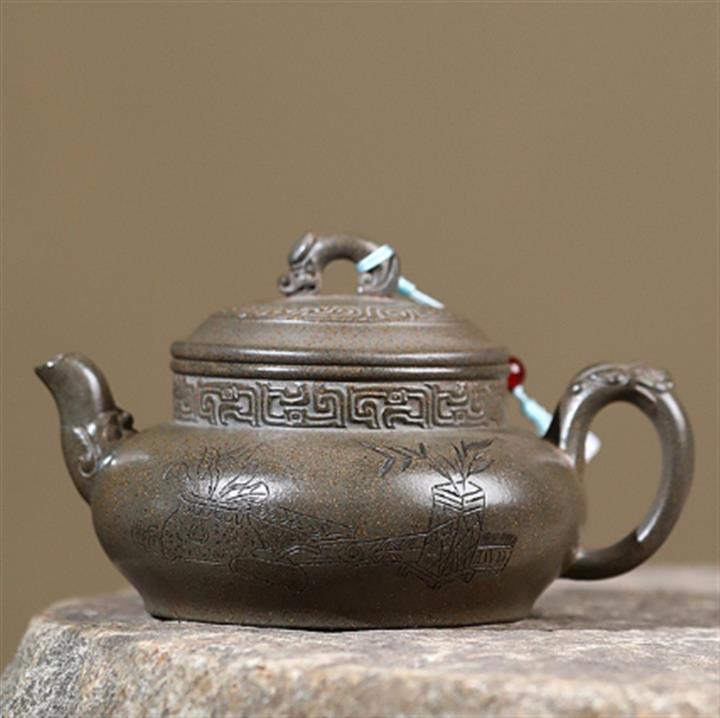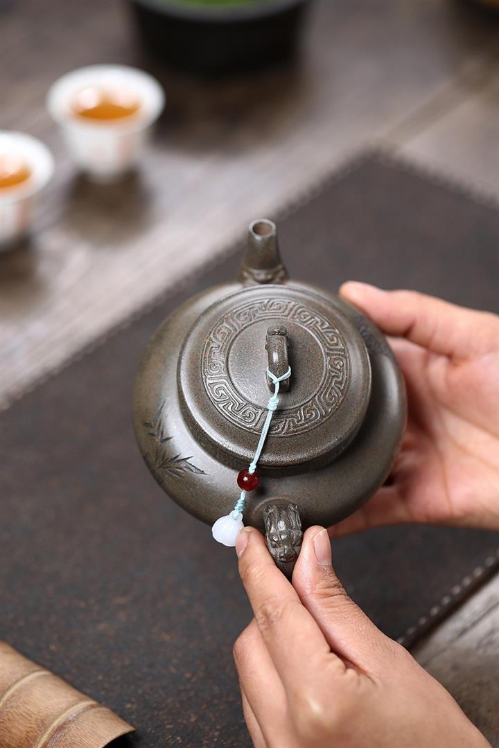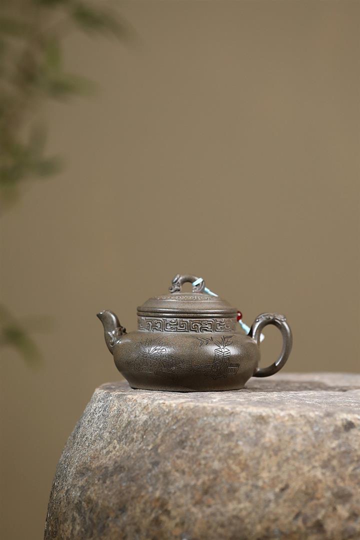 原礦龍骨金砂高溫柴燒手工竹鼓茶壺POT6638
