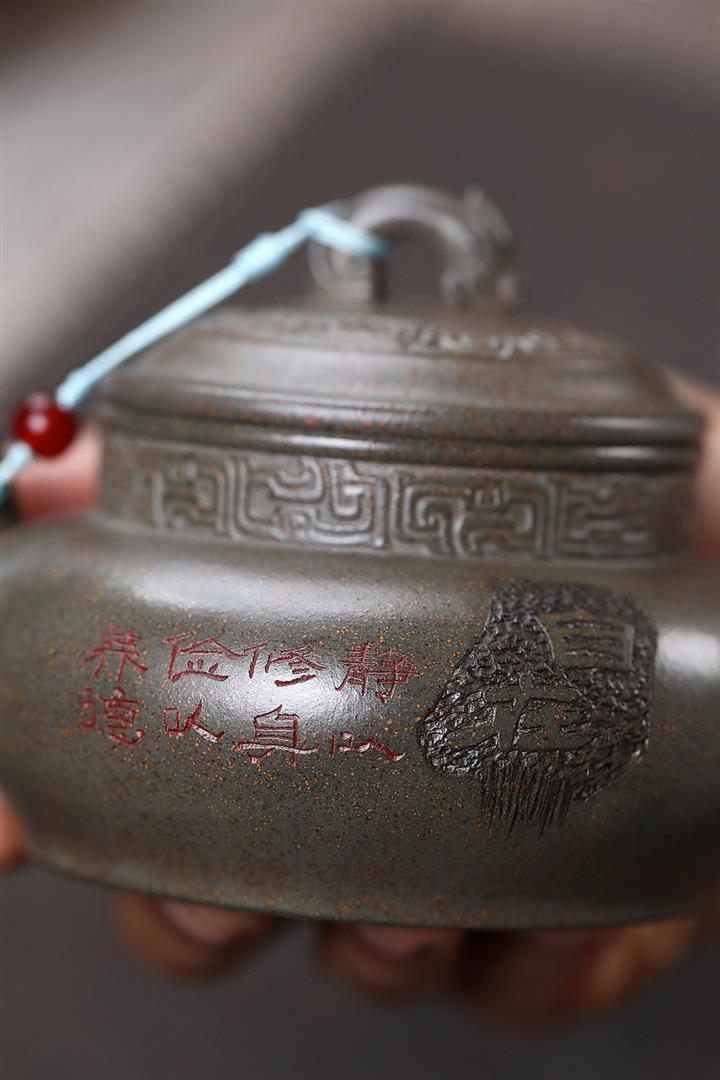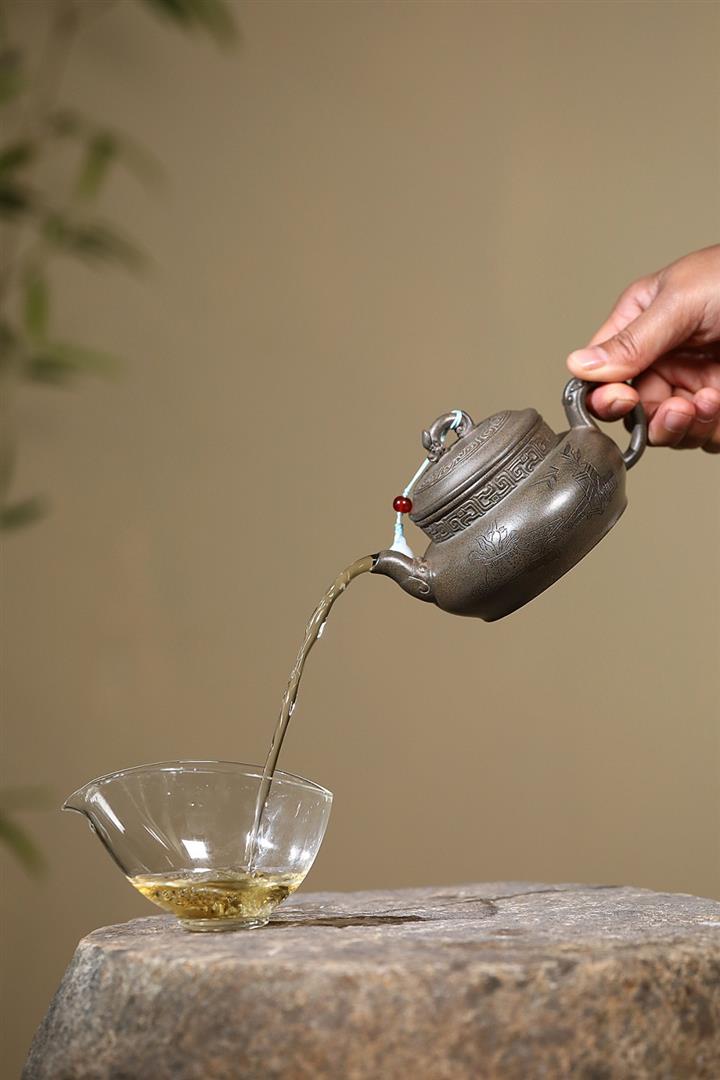 【泥料特點】砂土氣重,似淳實農民,日久使用,漸露鋒芒,養成變化,溫潤莊重。紫砂是一種雙重氣孔結構的多孔性材質,氣孔微細,密度高。用紫砂壺沏茶,不失原味,且香不渙散,得茶之真香真味。紫砂使用越久,壺身色澤越發光亮照人,氣韻溫雅。紫砂壺長久使用器身會因撫摸擦拭,變得越發溫潤光澤!