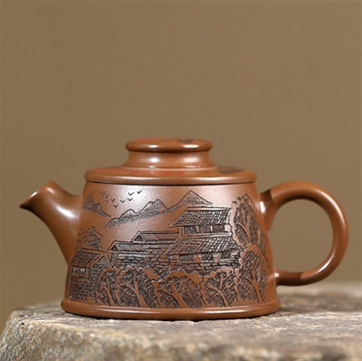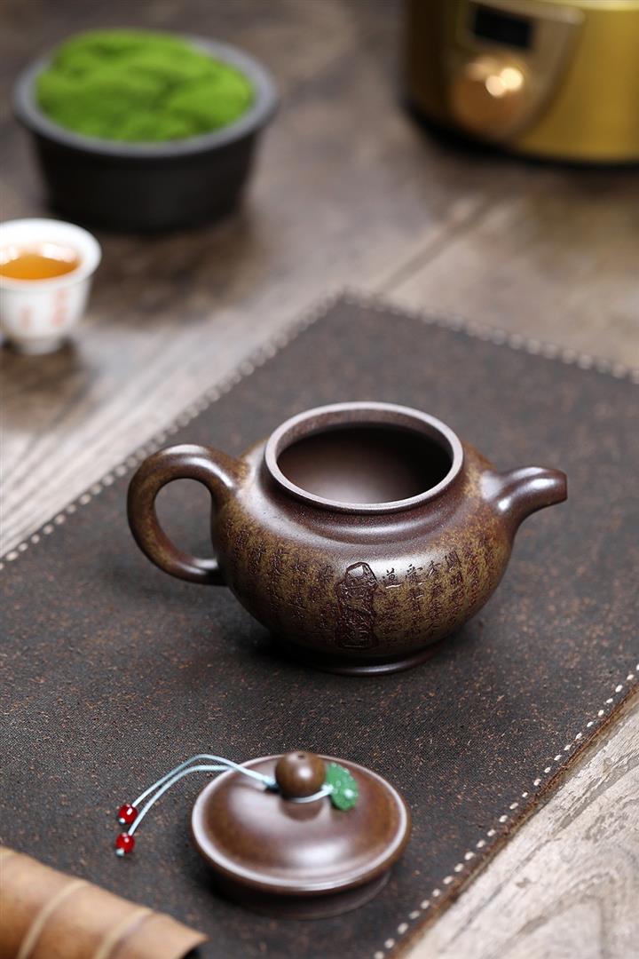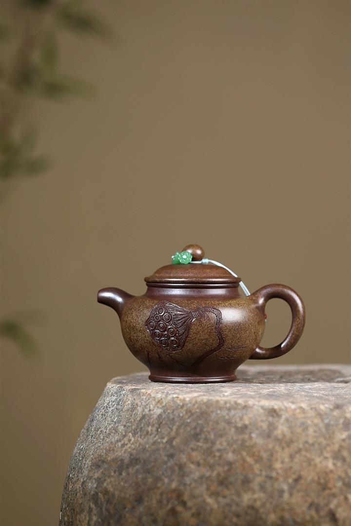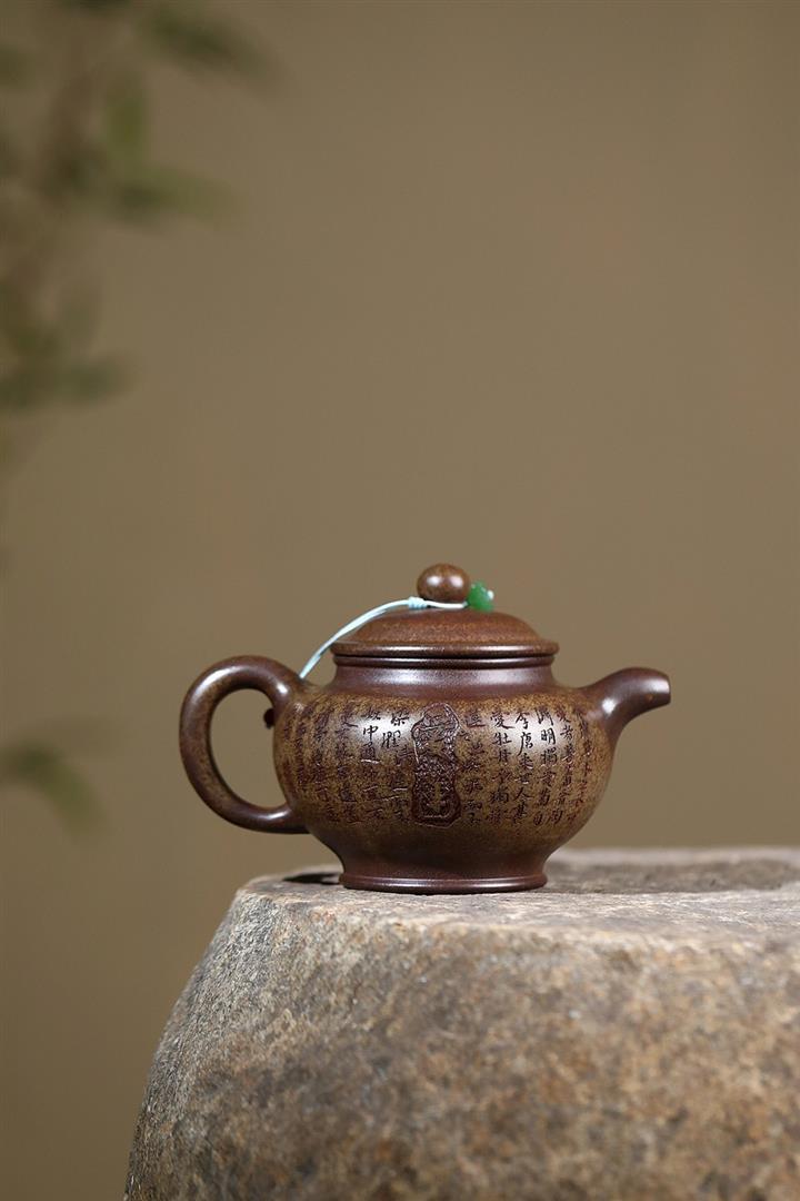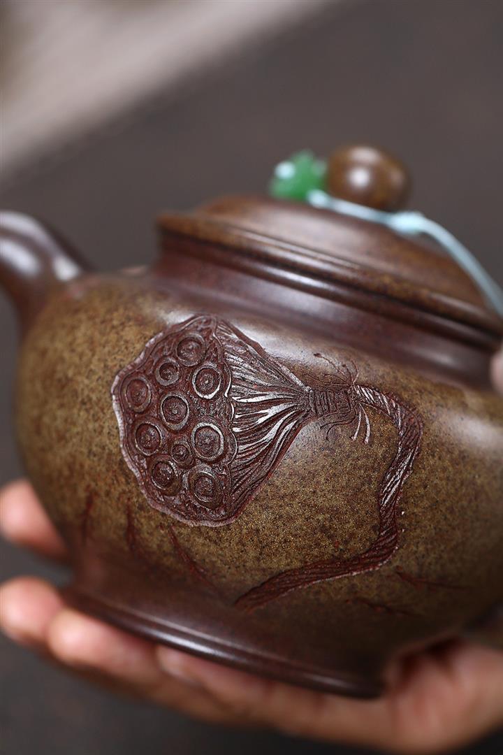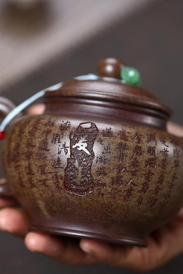 原礦龍骨金砂柴燒手工刻梅周盤茶壺POT6642