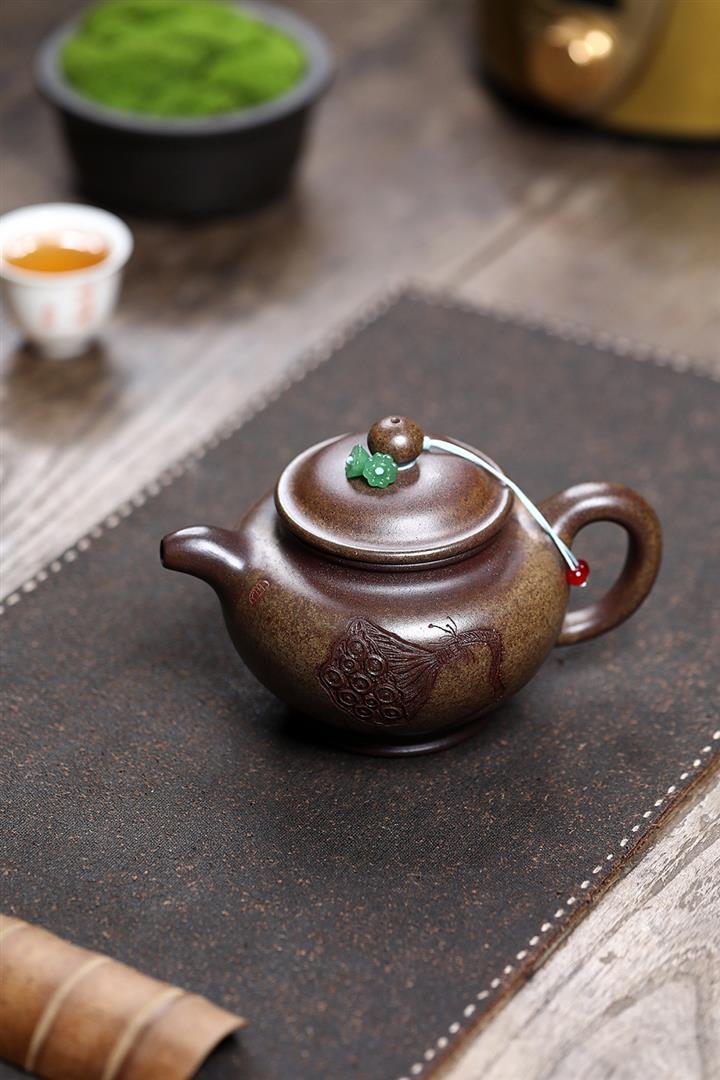 原礦紫玉金砂手工荷趣扁韻壺POT6643