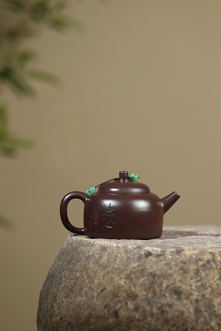 原礦老紫泥手工祥雲禪心德鐘茶壺POT6647