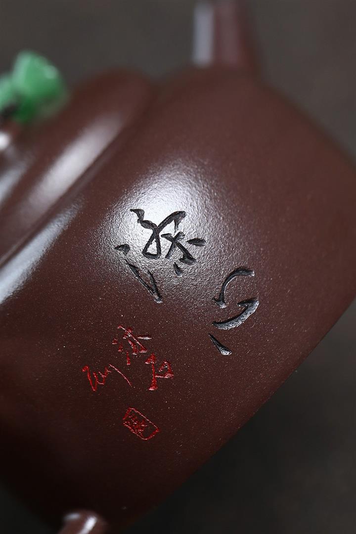 原礦老紫泥手工金獅繡球高石瓢壺POT6651