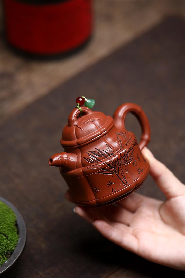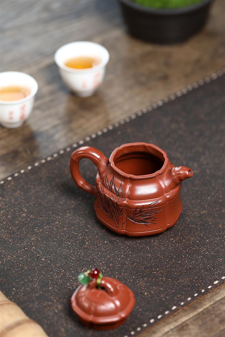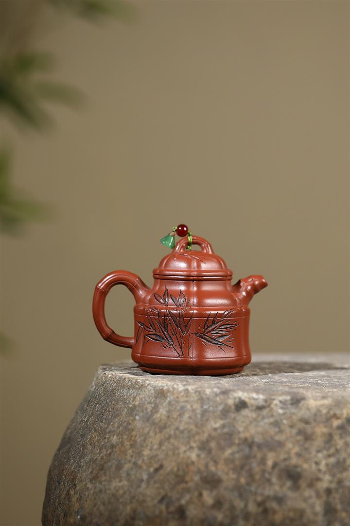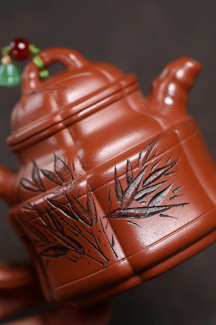 原礦朱泥手工筋紋竹鼎茶壺POT6649