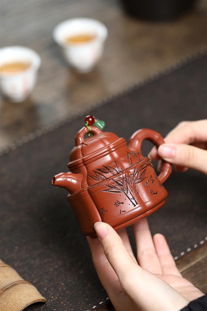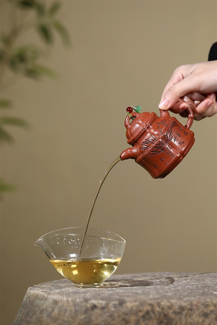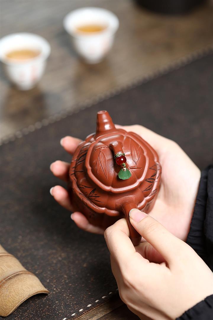 紫砂使用越久,壺身色澤越發光亮照人,氣韻溫雅。紫砂壺長久使用器身會因撫摸擦拭,變得越發溫潤光澤!