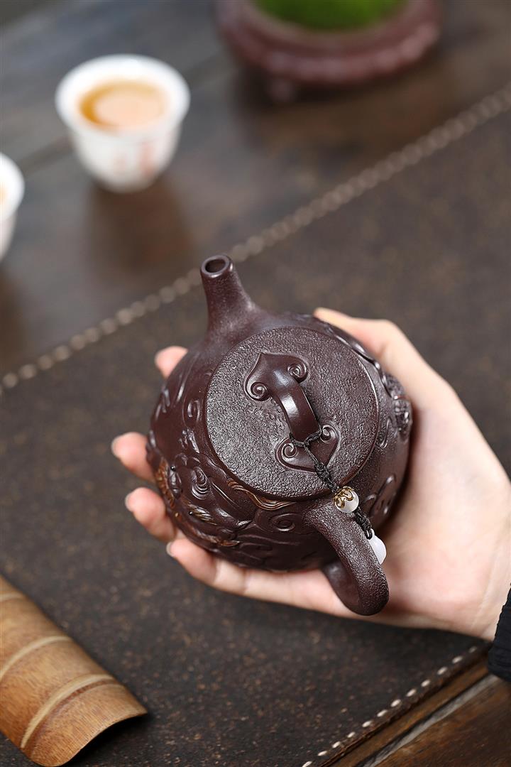 紫砂使用越久,壺身色澤越發光亮照人,氣韻溫雅。紫砂壺長久使用器身會因撫摸擦拭,變得越發溫潤光澤!