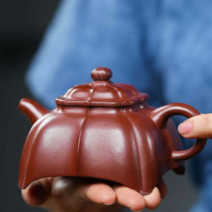 原礦朱泥全手工筋紋如意茶壺POT6667