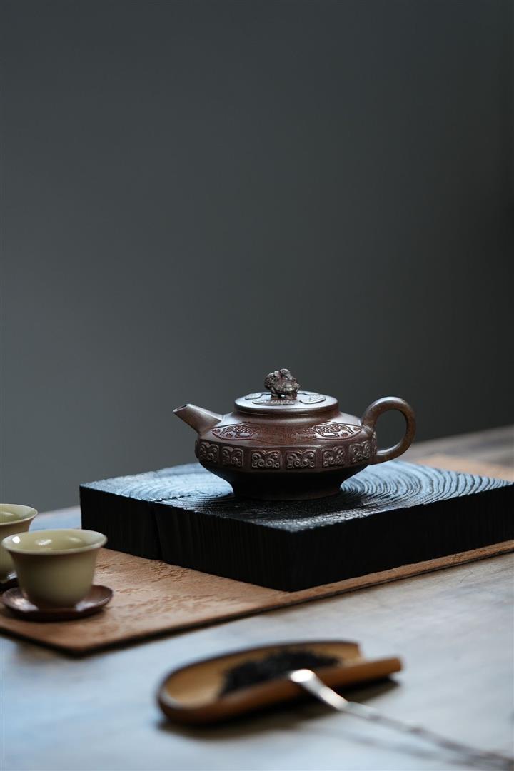 原礦墨綠泥手工祥麟威風漢瓦茶壺POT6672