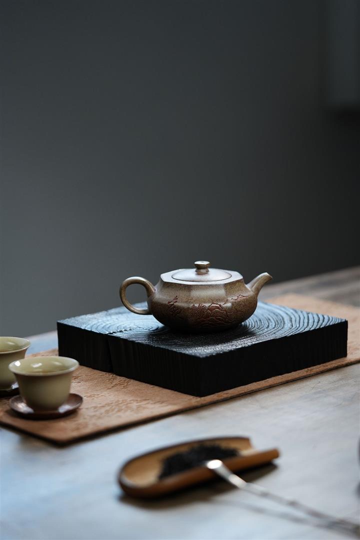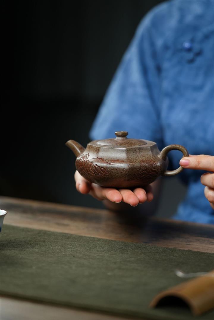 原礦龍骨金砂高溫柴燒竹影茶壺POT6668