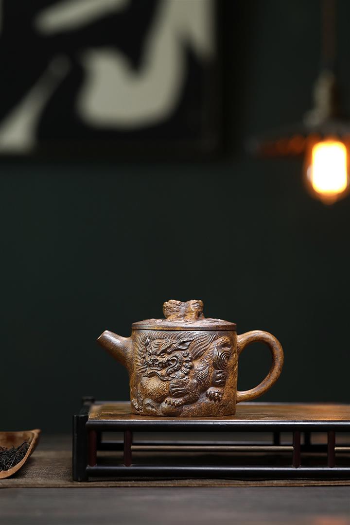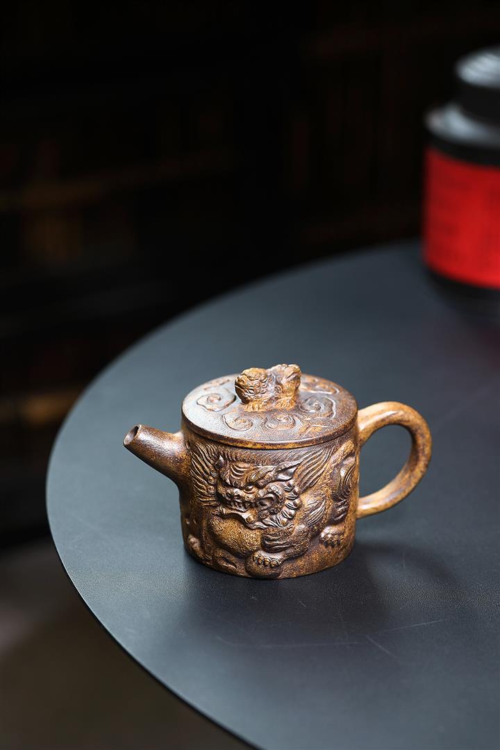 原礦老紫泥手工麟止呈祥茶壺POT6677