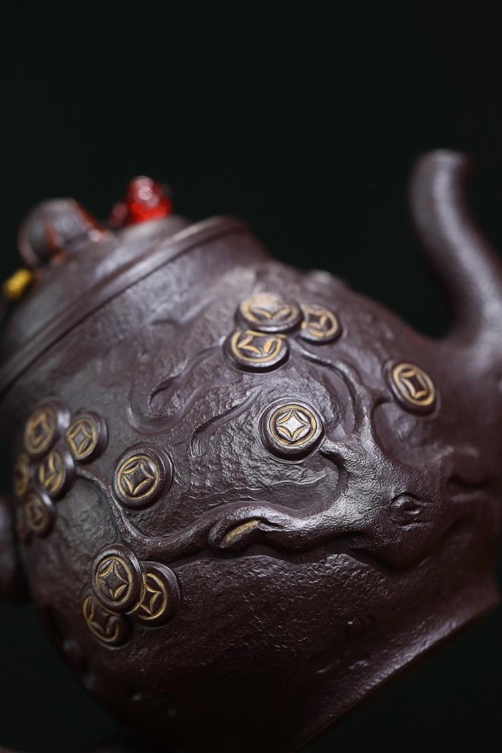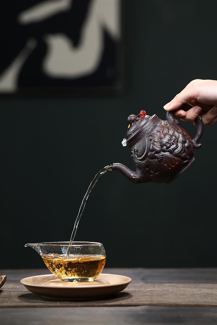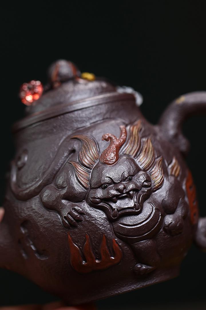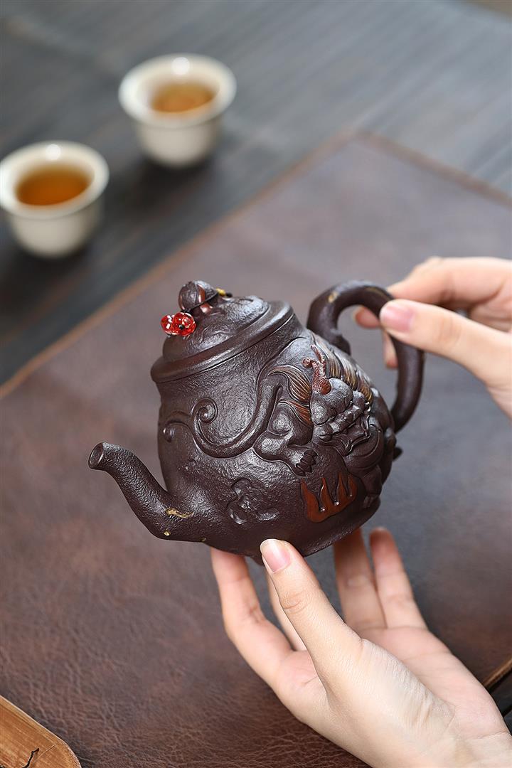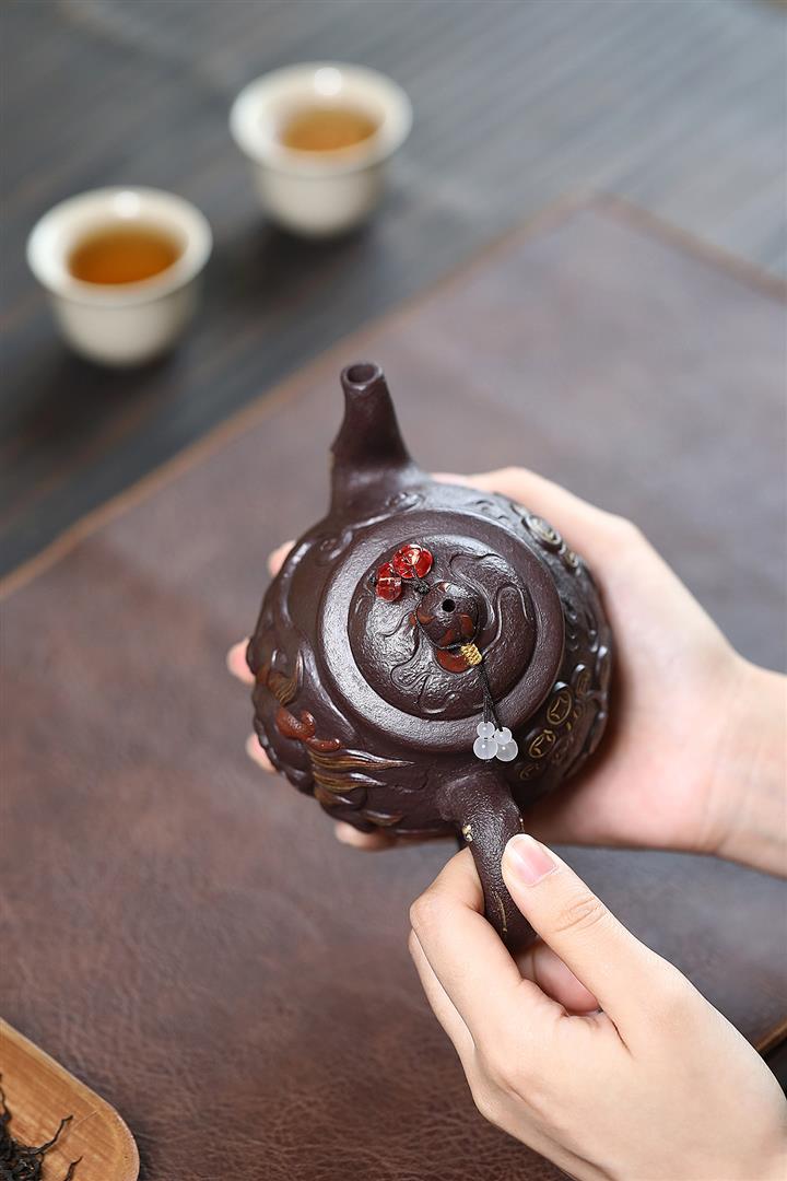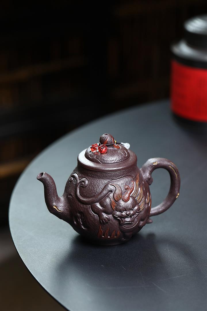原礦老紫泥手工麟止呈祥茶壺POT6677