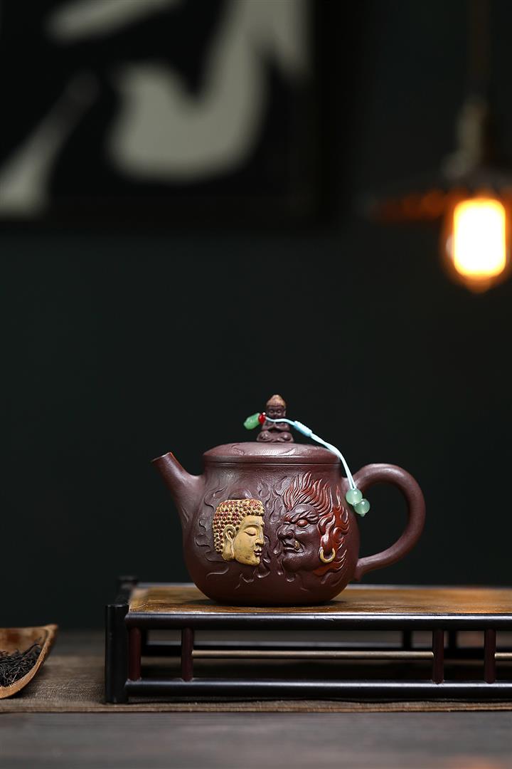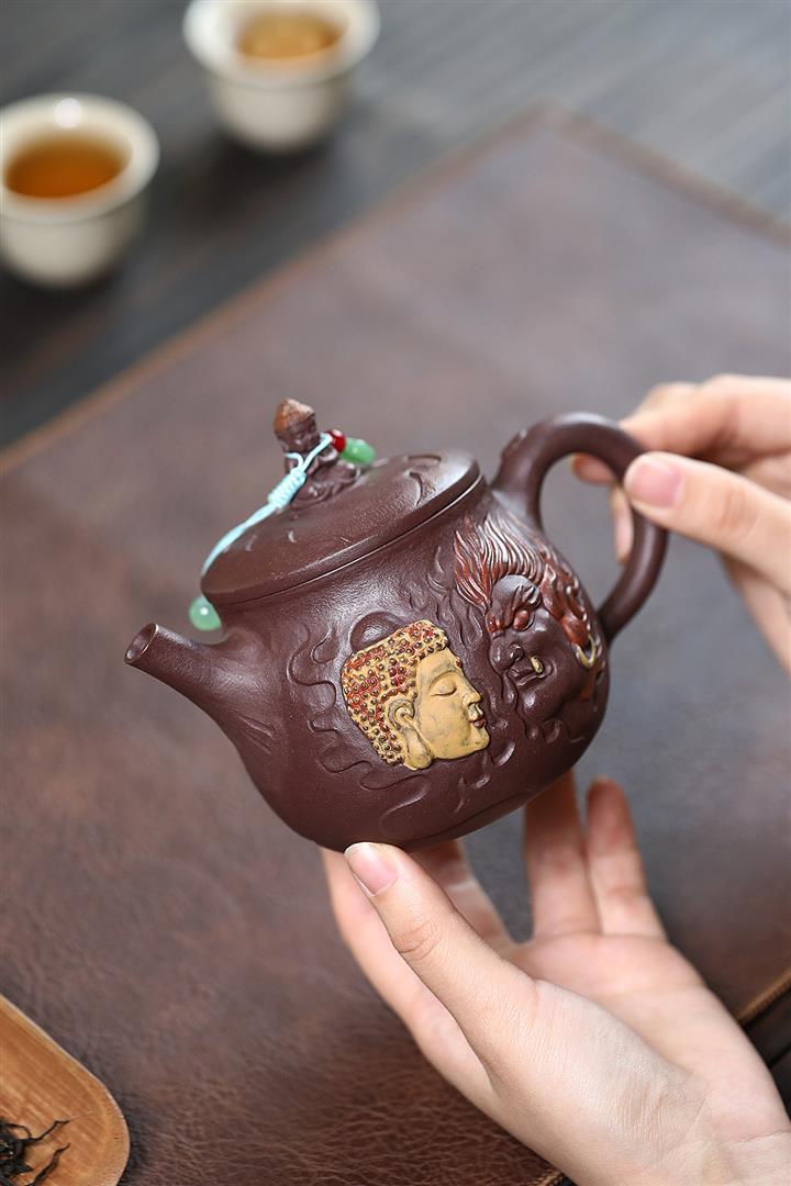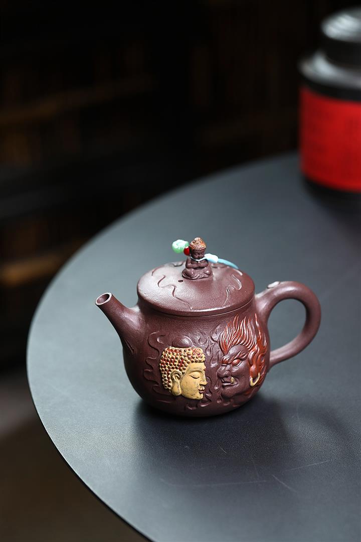 原礦老紫泥手工即心即佛漢瓦茶壺POT6678