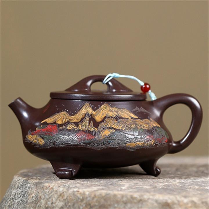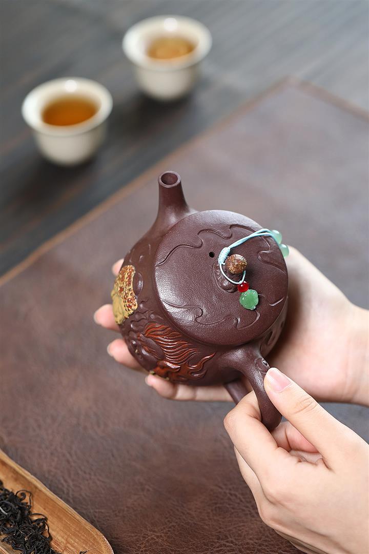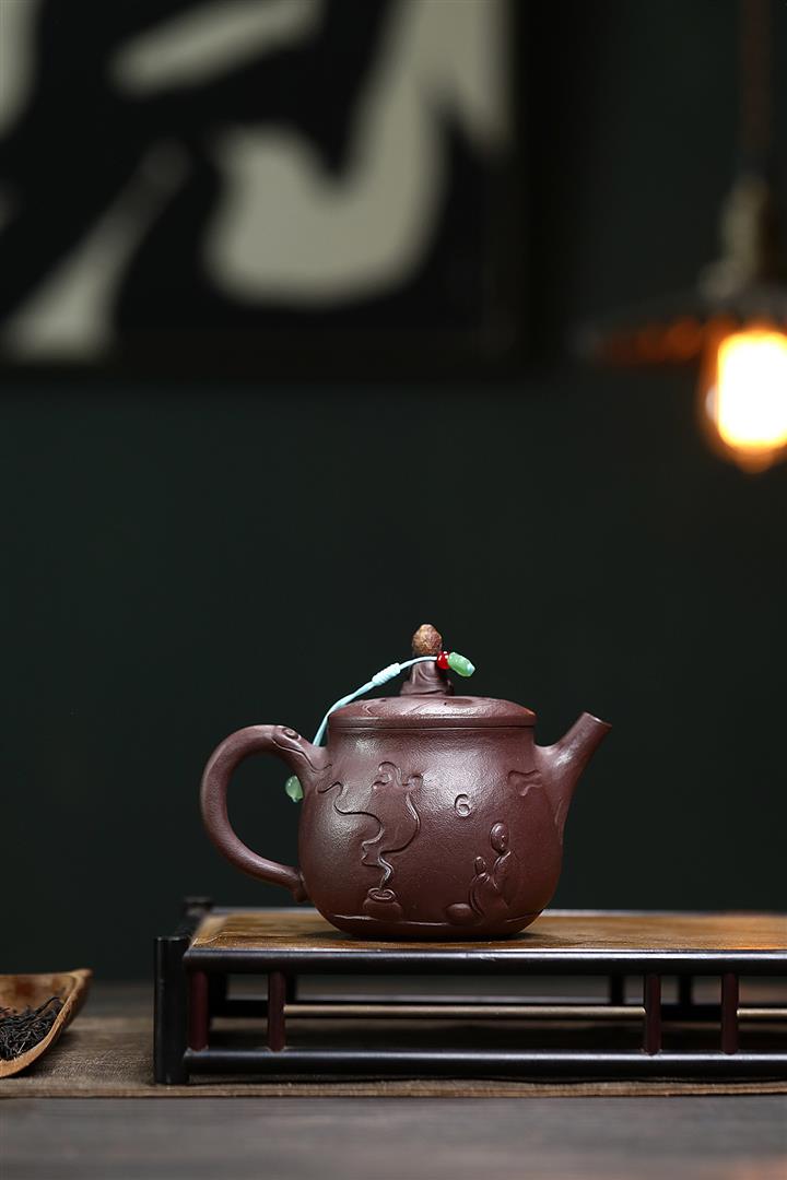 原礦赤龍血砂手工彩繪三足橋瓢茶具POT6688