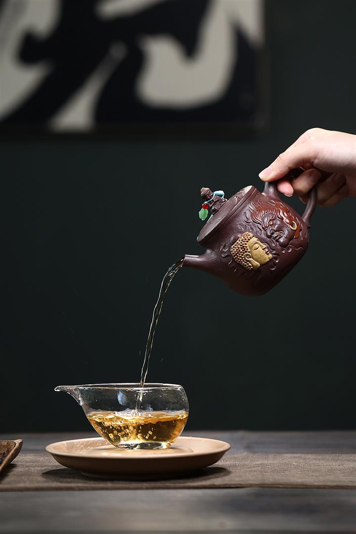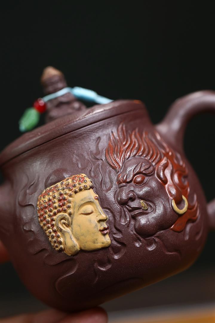 原礦老紫泥家藏十八羅漢漢瓦壺POT6681