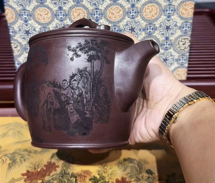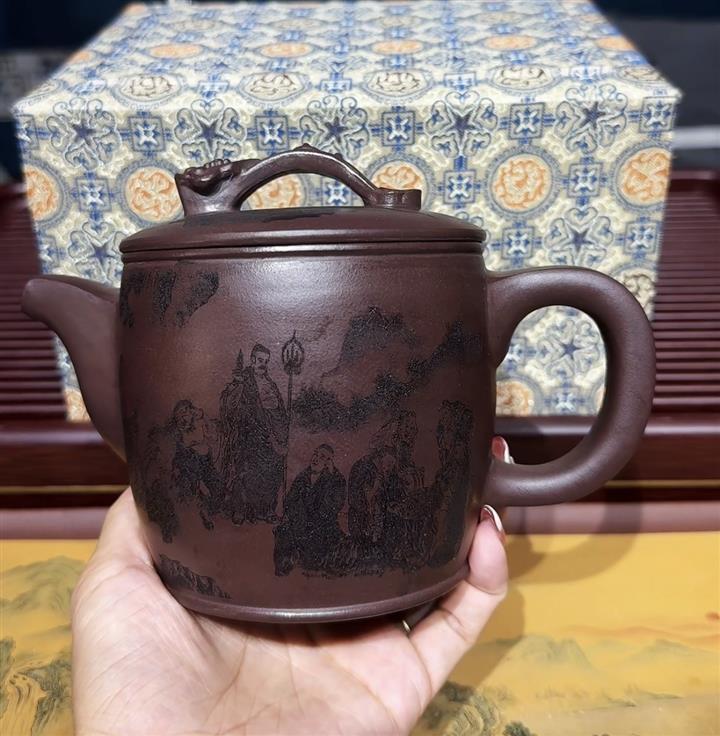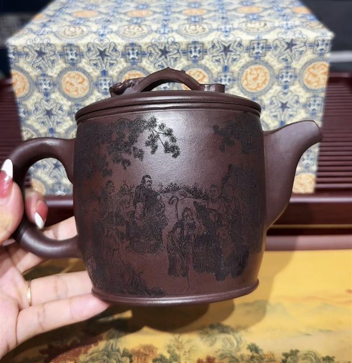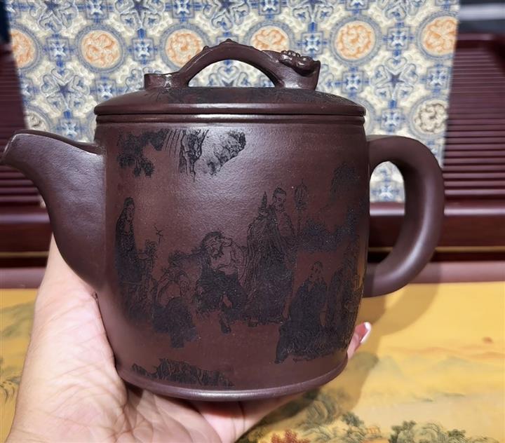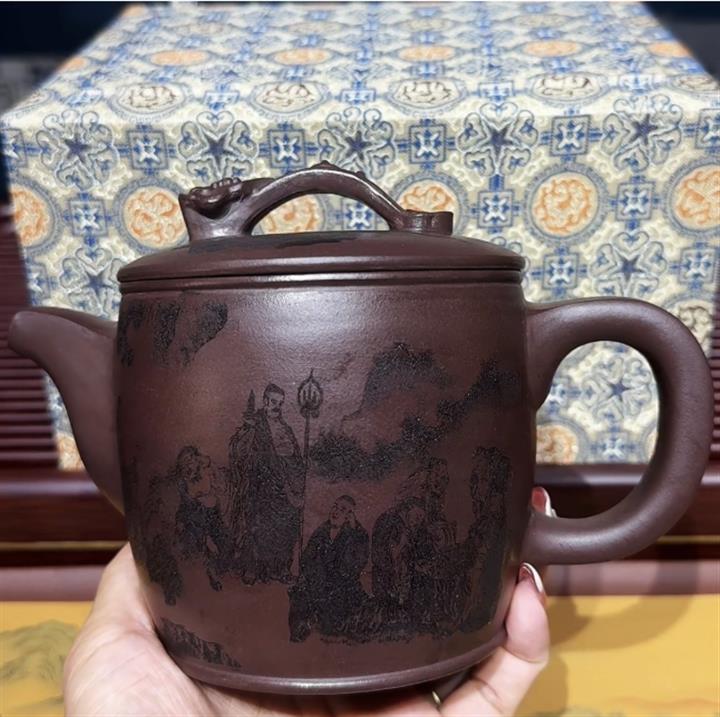 原礦老紫泥家藏十八羅漢漢瓦壺POT6681
