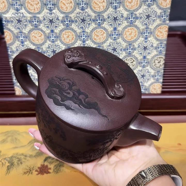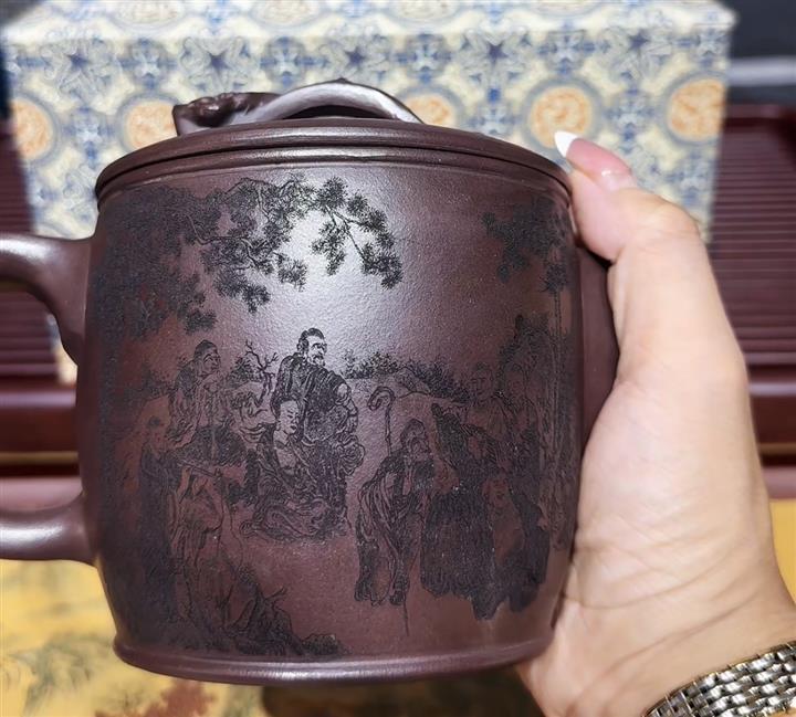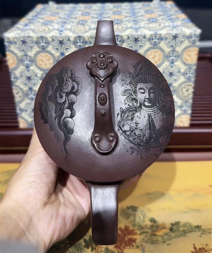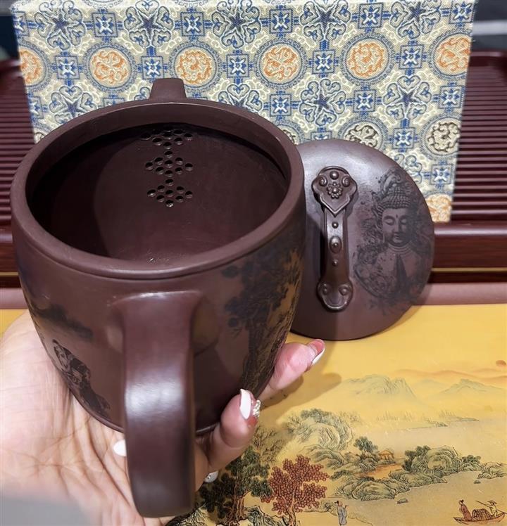 工藝】大口壺好投茶,容量大,18羅漢圖案壺身,蓋子如意造型,壺身都是圖案,證書+禮盒 看看刻工,蓋子設計 、就知道價格多香,賣廠裏庫存清倉。要大品好泥的這個不要錯過哦