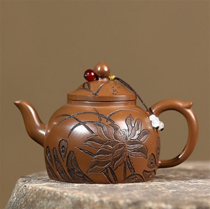 原礦紫朱泥手工刻繪蘭花容天茶壺POT6691