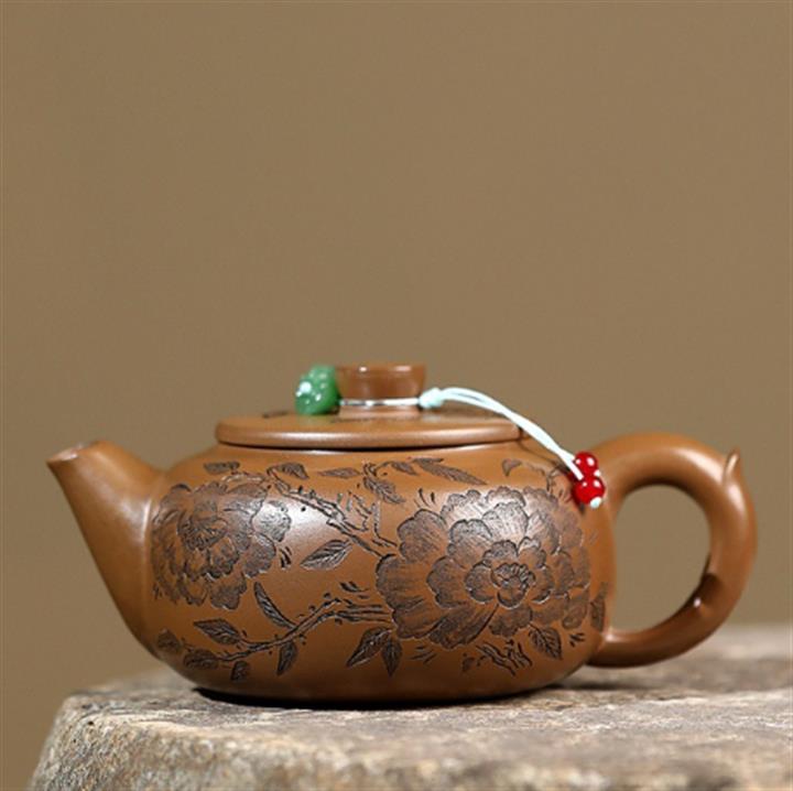 原礦赤金朱泥手工牡丹玉盤茶壺POT6690