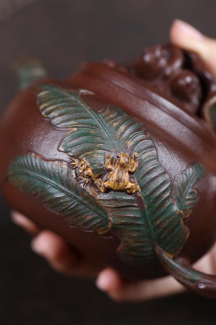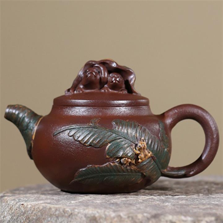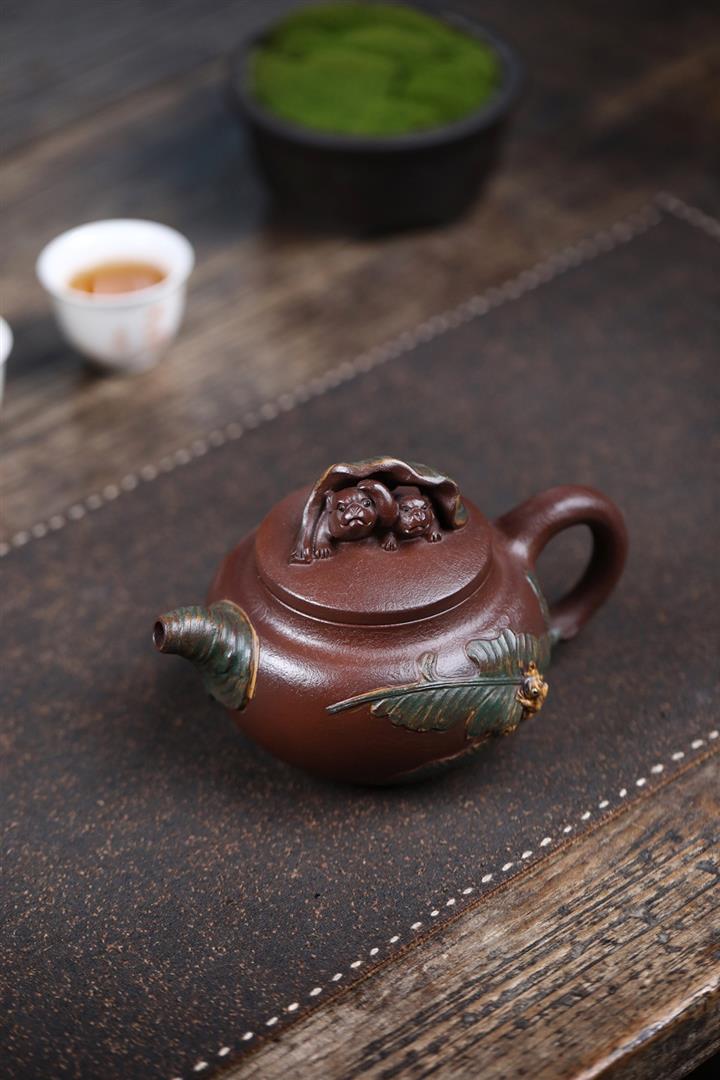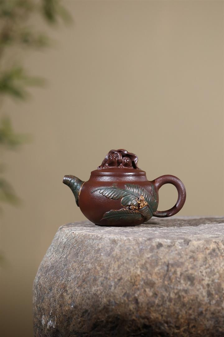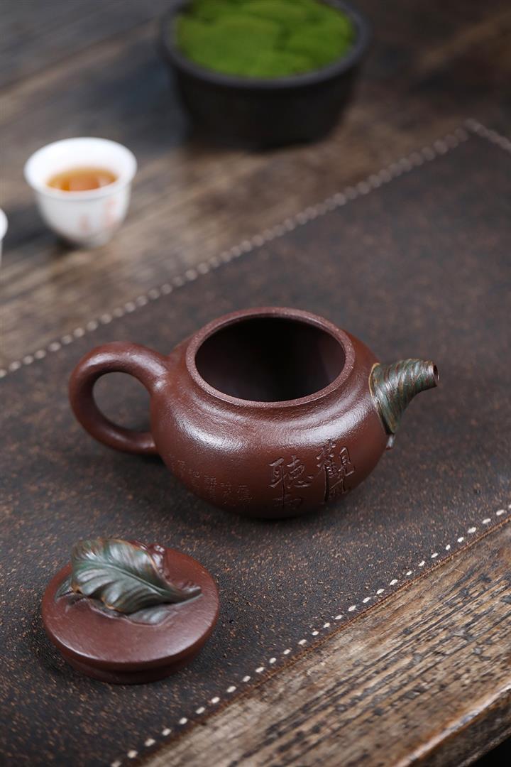 原礦赤龍血砂手工彩繪三足橋瓢茶具POT6688