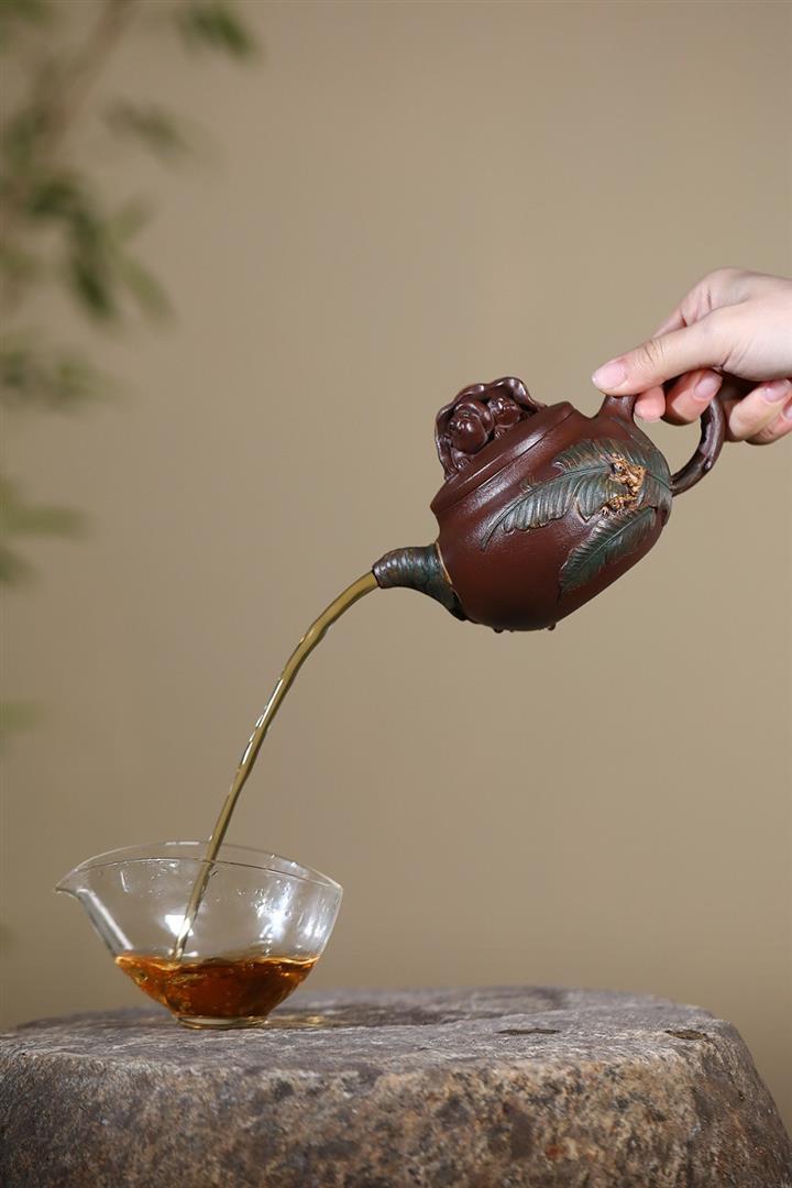 紫砂使用越久,壺身色澤越發光亮照人,氣韻溫雅。紫砂壺長久使用器身會因撫摸擦拭,變得越發溫潤光澤!
