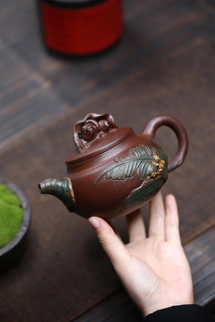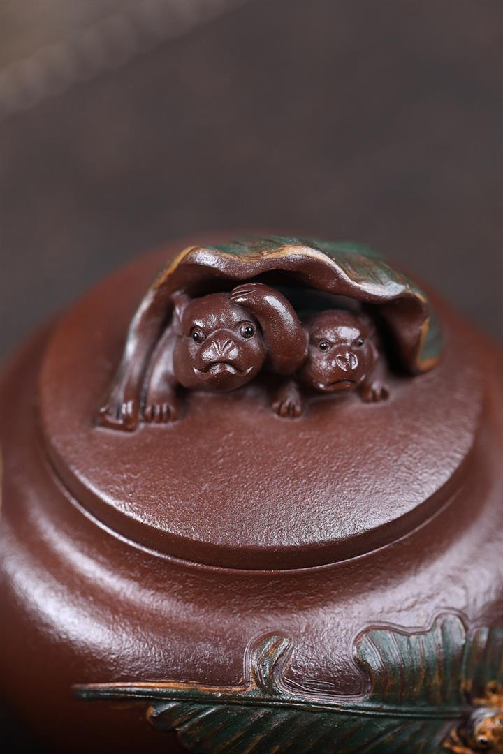 原礦赤金朱泥手工荷香宮燈茶壺POT6689