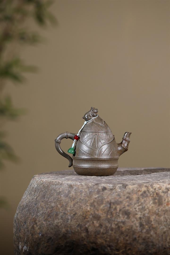 原礦青灰段手工竹筍茶壺POT6684
