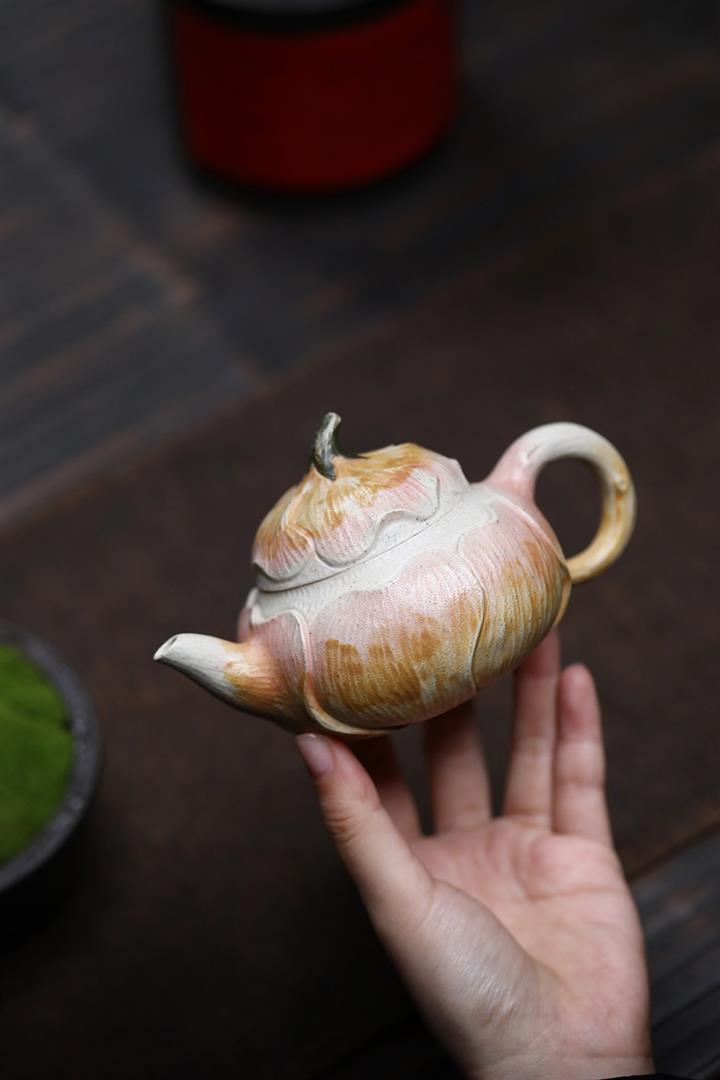 原礦赤金朱泥手工牡丹玉盤茶壺POT6690