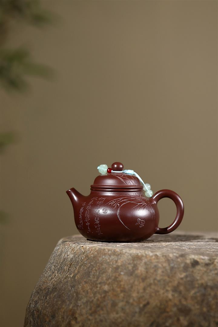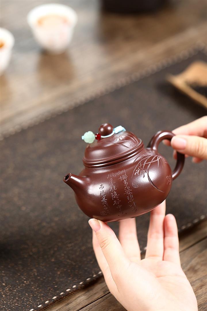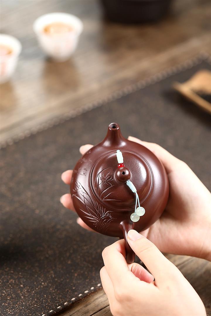 原礦紫朱泥手工刻繪蘭花容天茶壺POT6691