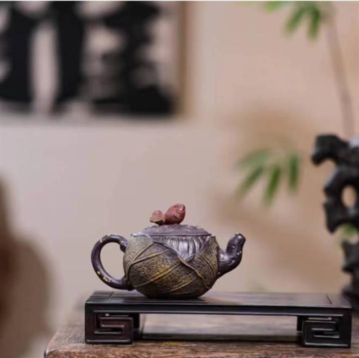 原礦鄒皮朱泥手工金蓮龍蛋茶壺POT6707