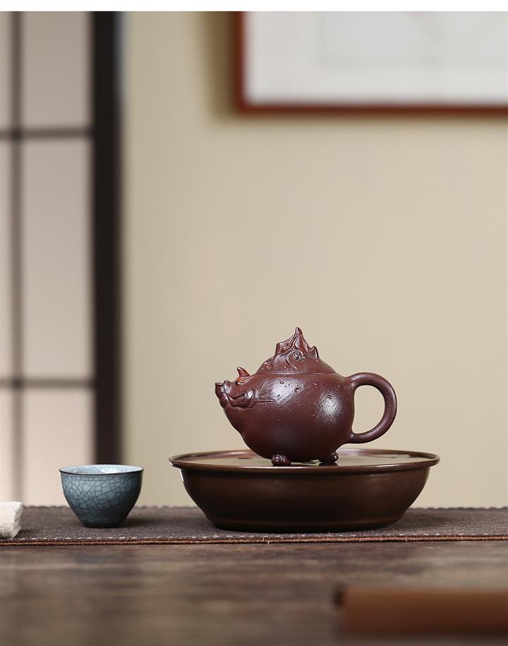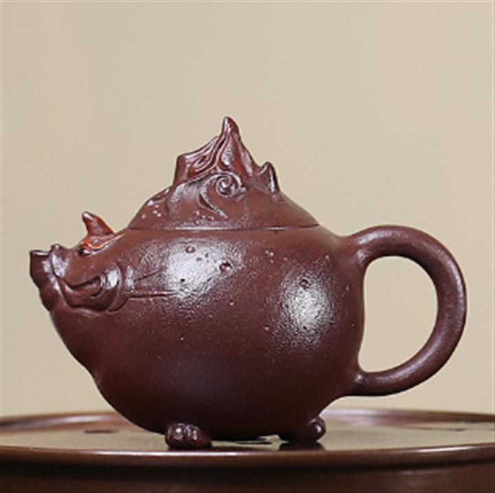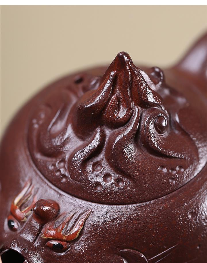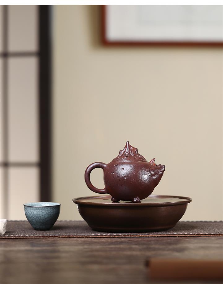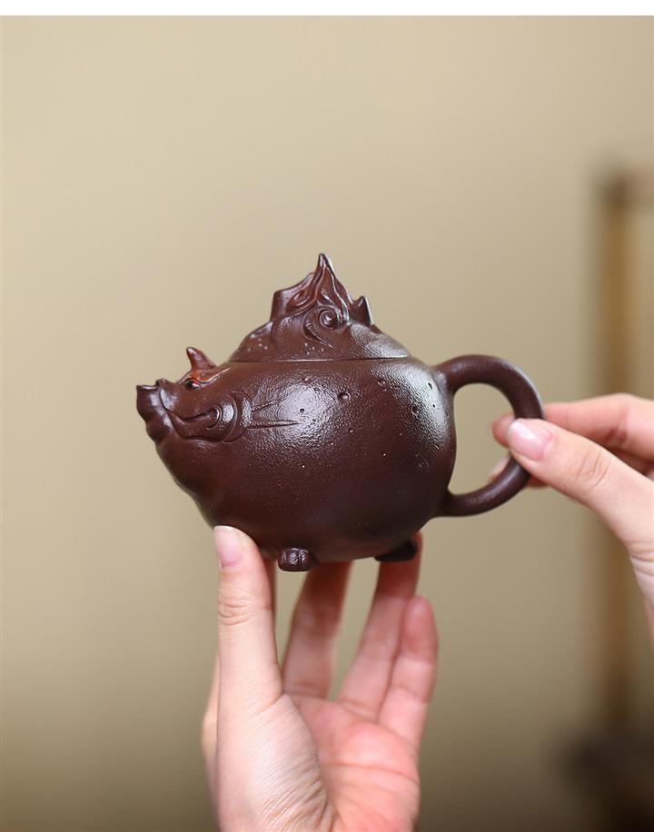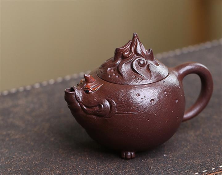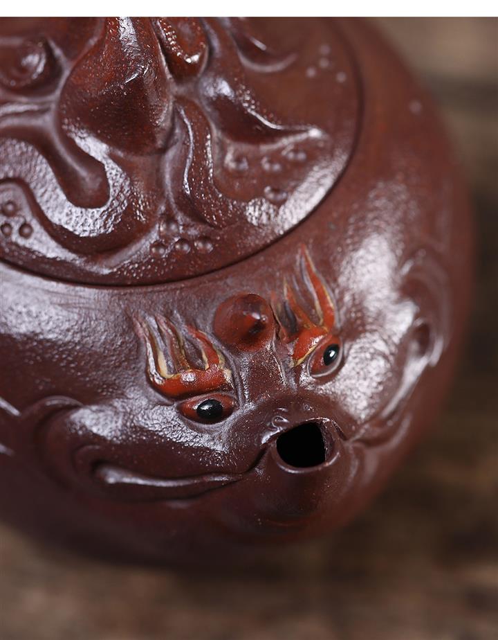 原礦紫泥手工雕塑獨占鰲頭茶寵壺POT6702