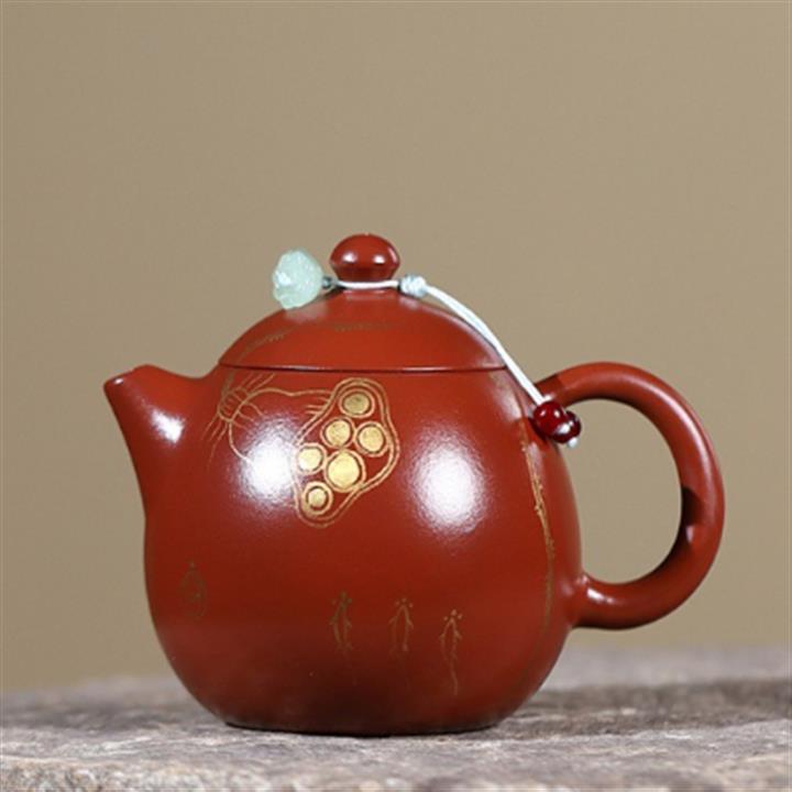 原礦鄒皮朱泥手工金蓮龍蛋茶壺POT6707
