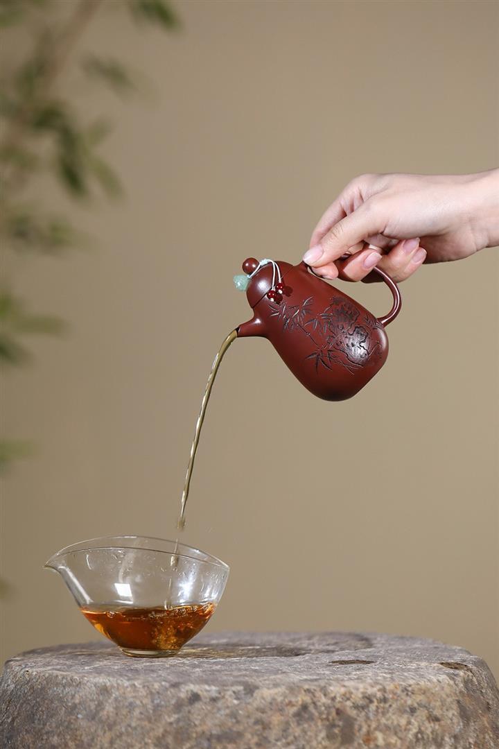 紫砂使用越久,壺身色澤越發光亮照人,氣韻溫雅。紫砂壺長久使用器身會因撫摸擦拭,變得越發溫潤光澤!