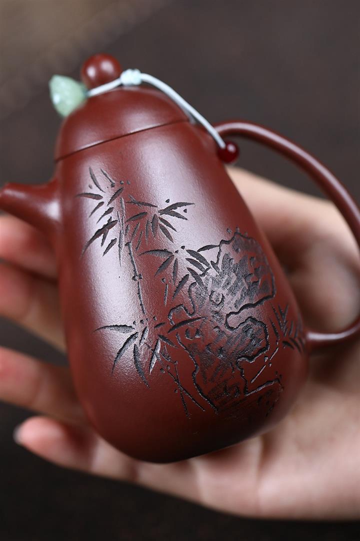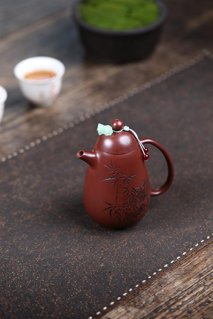 原礦家藏龍血砂刻竹高龍蛋壺POT6705