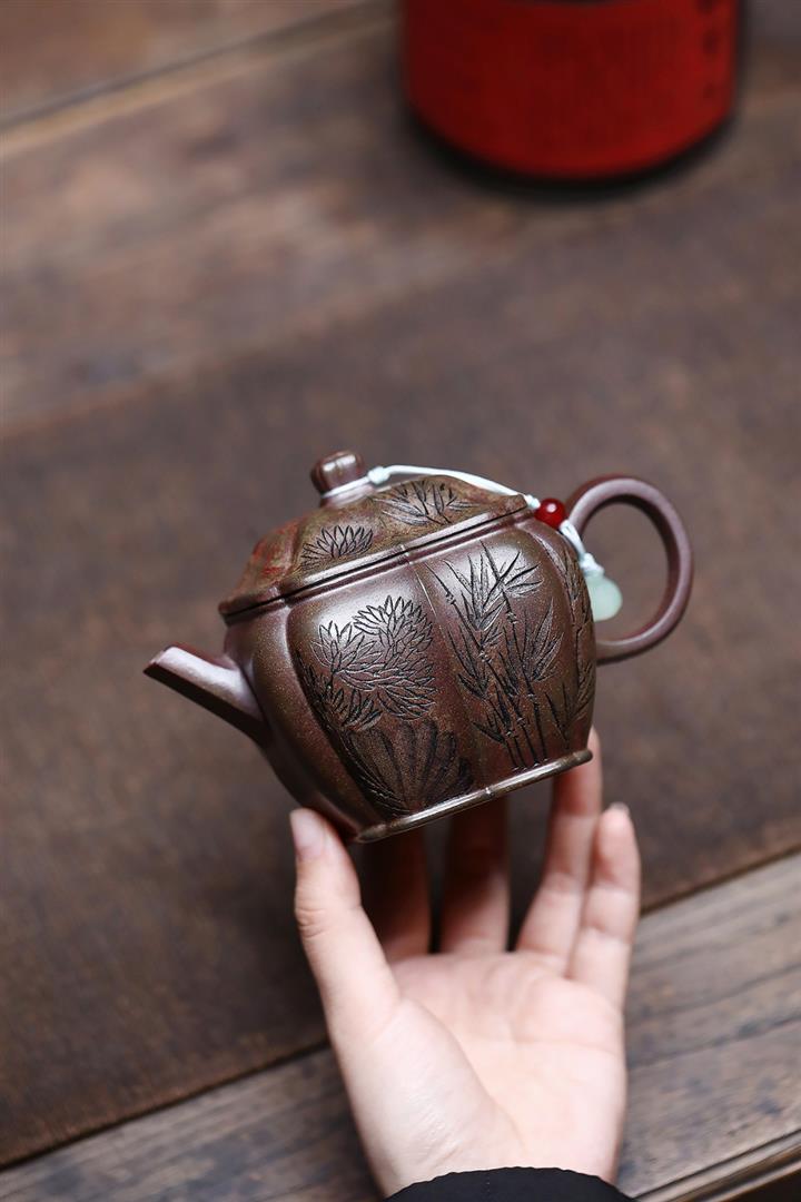 原礦龍骨金砂高溫柴燒一葉知秋茶壺POT6736