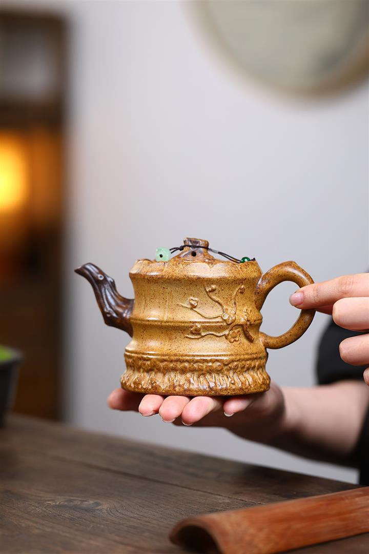 原礦龍骨金砂高溫柴燒竹筒紫砂壺POT6735